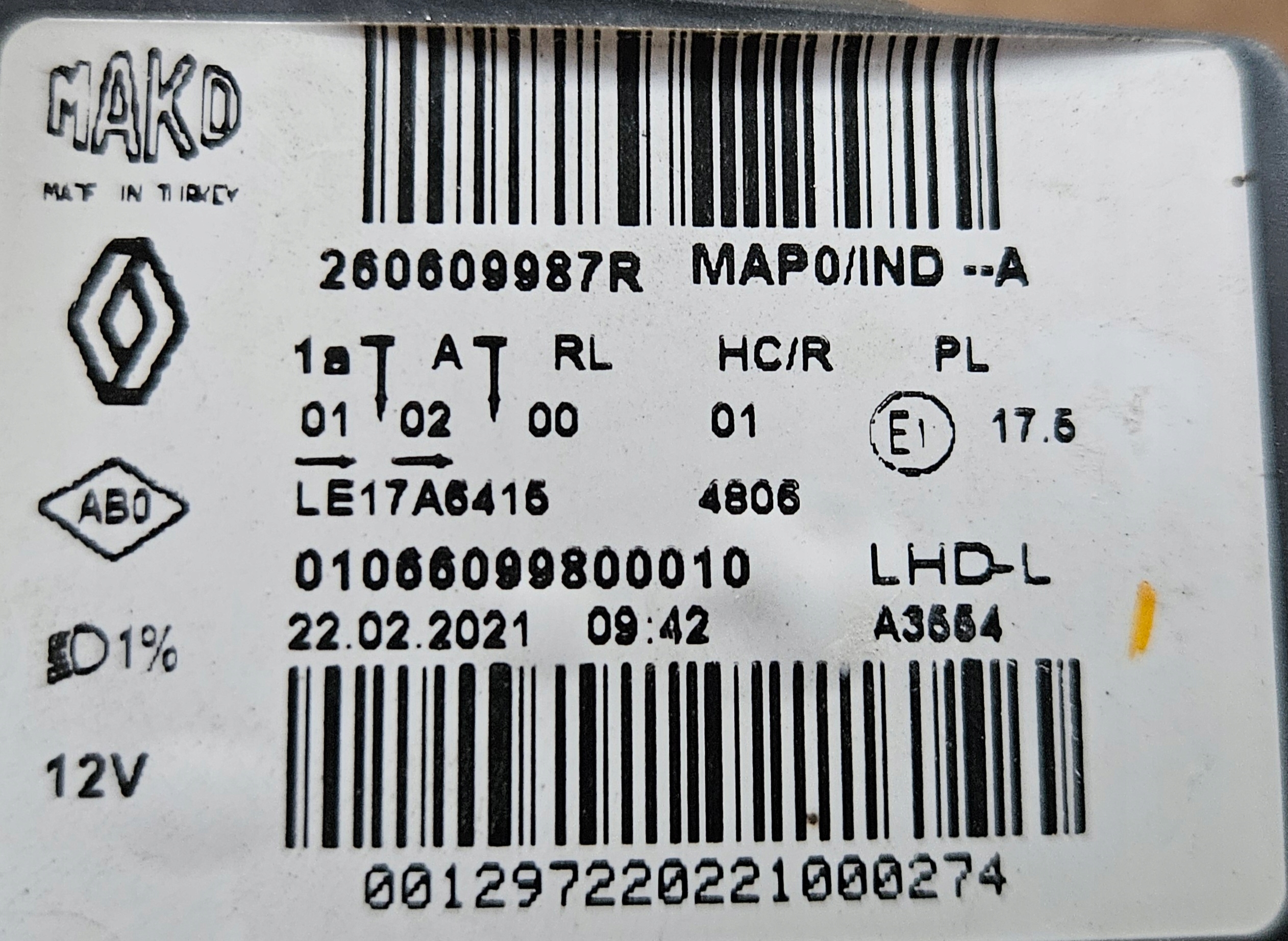 Каталожный номер детали: 260609987R
