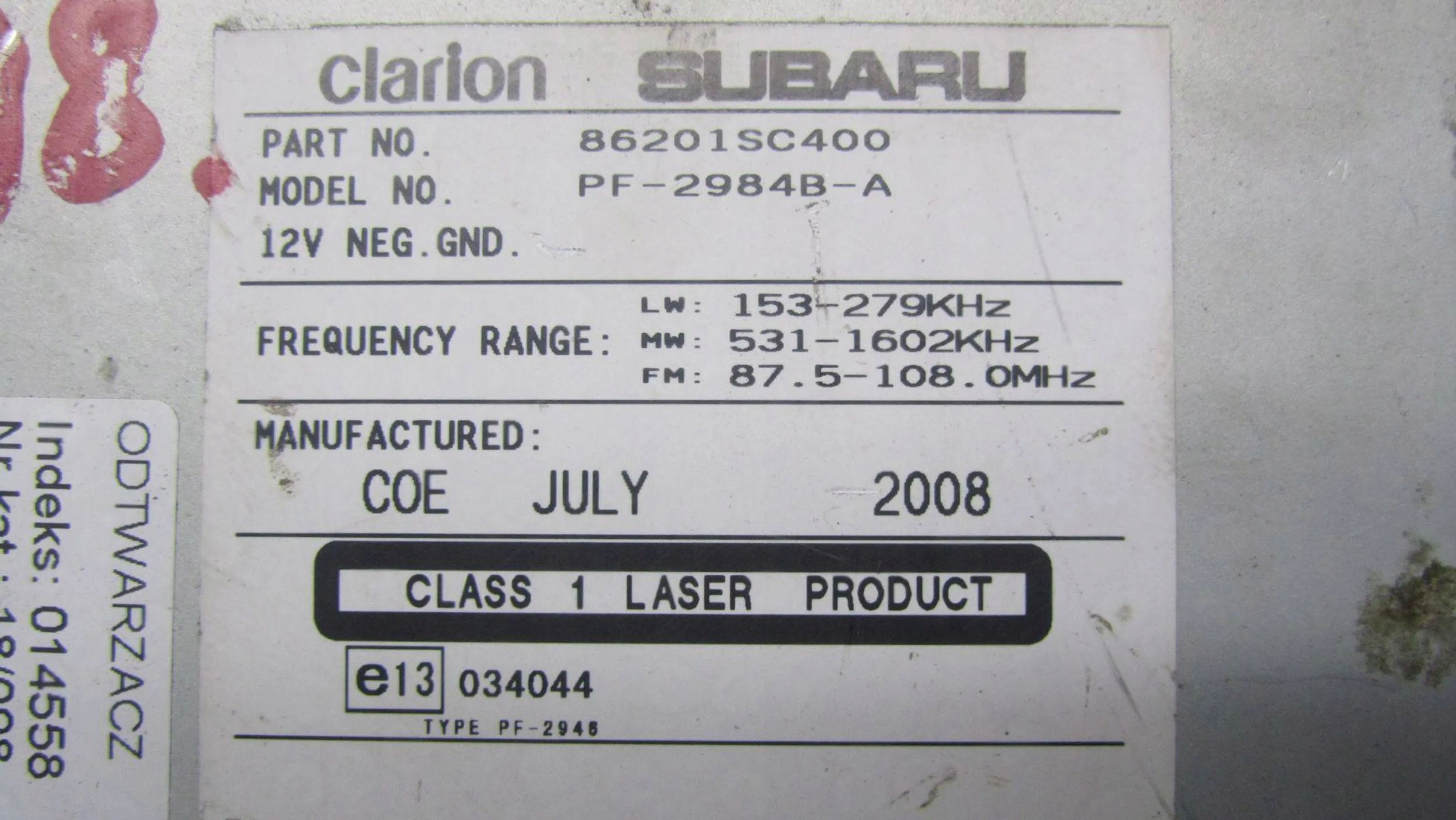 | Каталожный номер детали: | 86201SC400 |