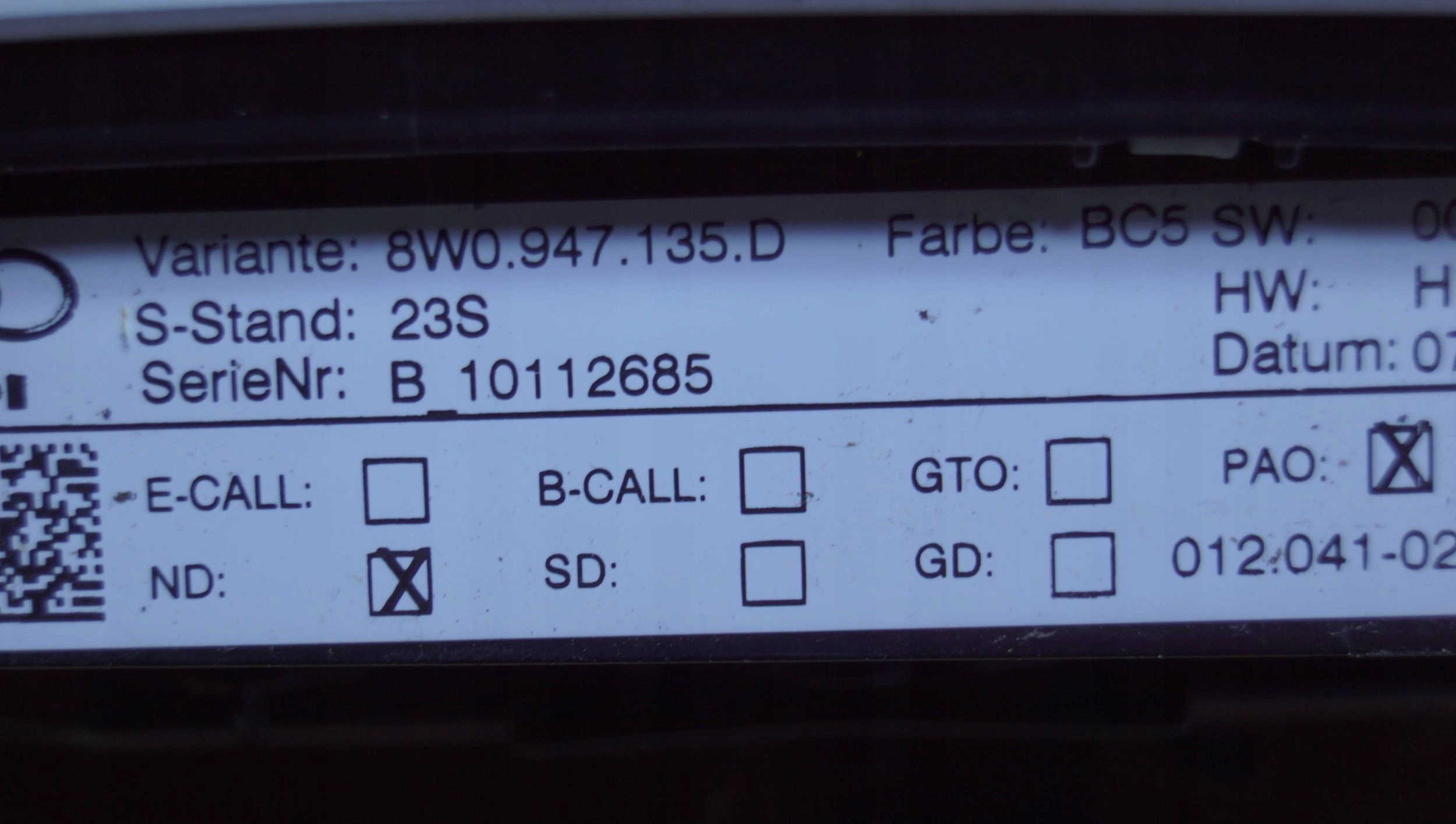 | Каталожный номер детали: | 8W0947135D |