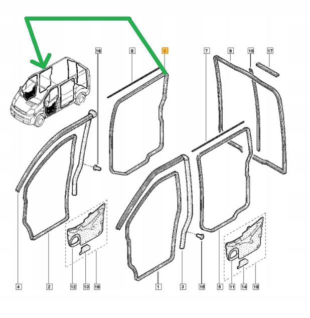 Прокладка дверь trafic vivaro 2001- боковых раздвижных оригинальная renault