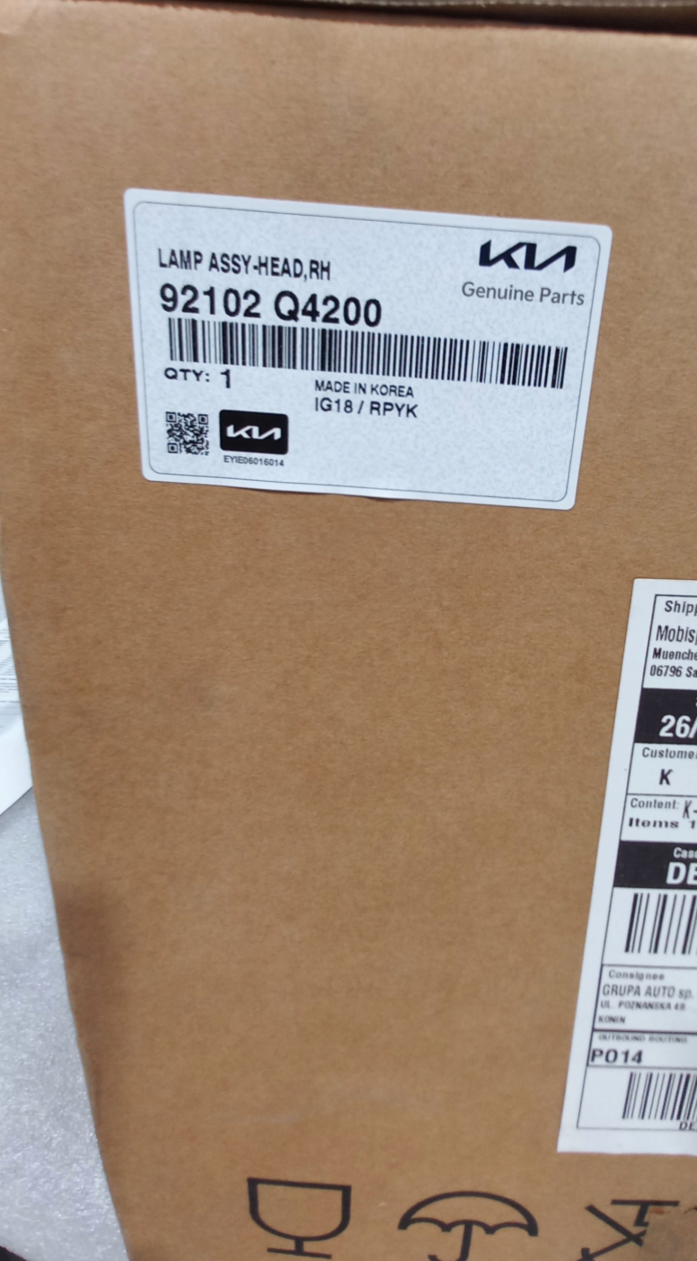Лампа правый перед e-niro 92102q4200