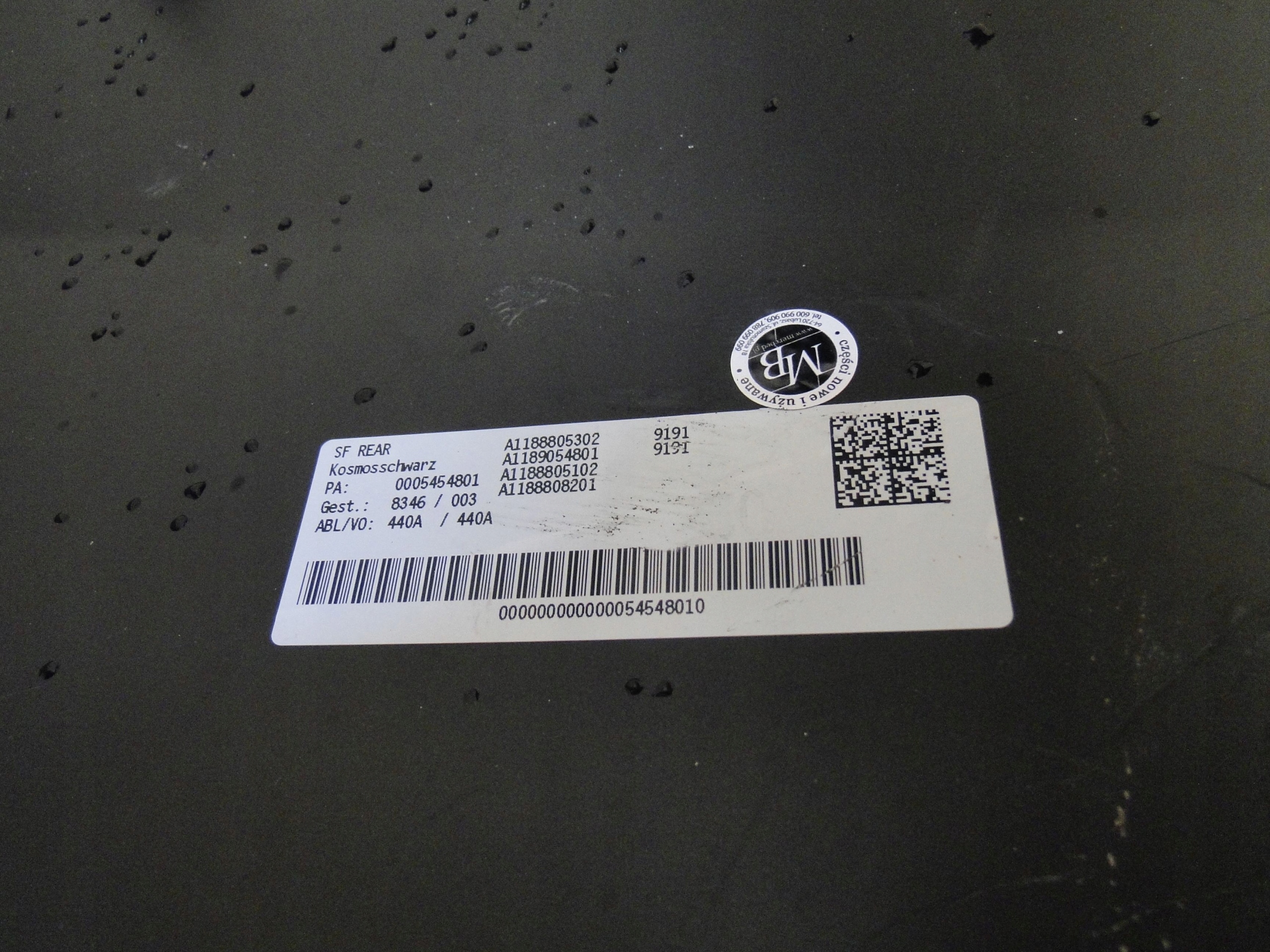 Каталожный номер детали: A1188804503, MERCEDES, ZDERZAK, TYLNY, TYŁ, NA, PARKTRONIC, PTS, CLA, 118, C118, X118, W118, LIFT