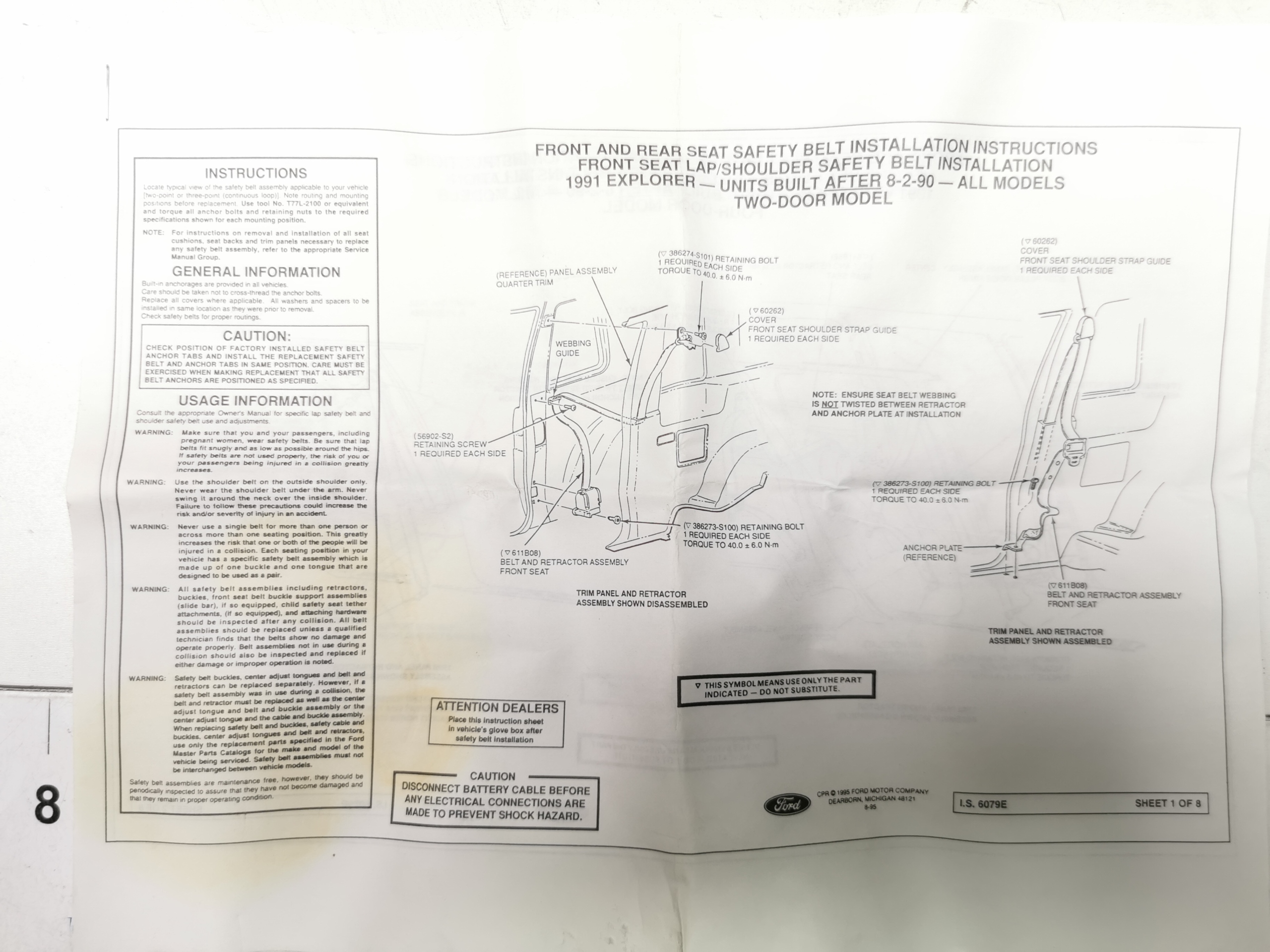 Pas безопасности перед ford explorer 1991 оригинальный номер 3904060
