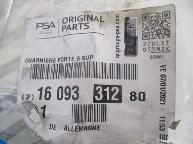 | Каталожный номер детали: | ZAWIAS DRZWI PRZÓD LEWY GÓRA DÓŁ OPEL COMBO D 1609331280 1609331380 |