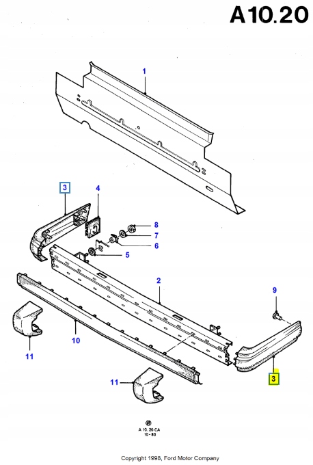 Расширитель - бампер - bok правый задняя escort/orion 1981-1986 ca 6080469