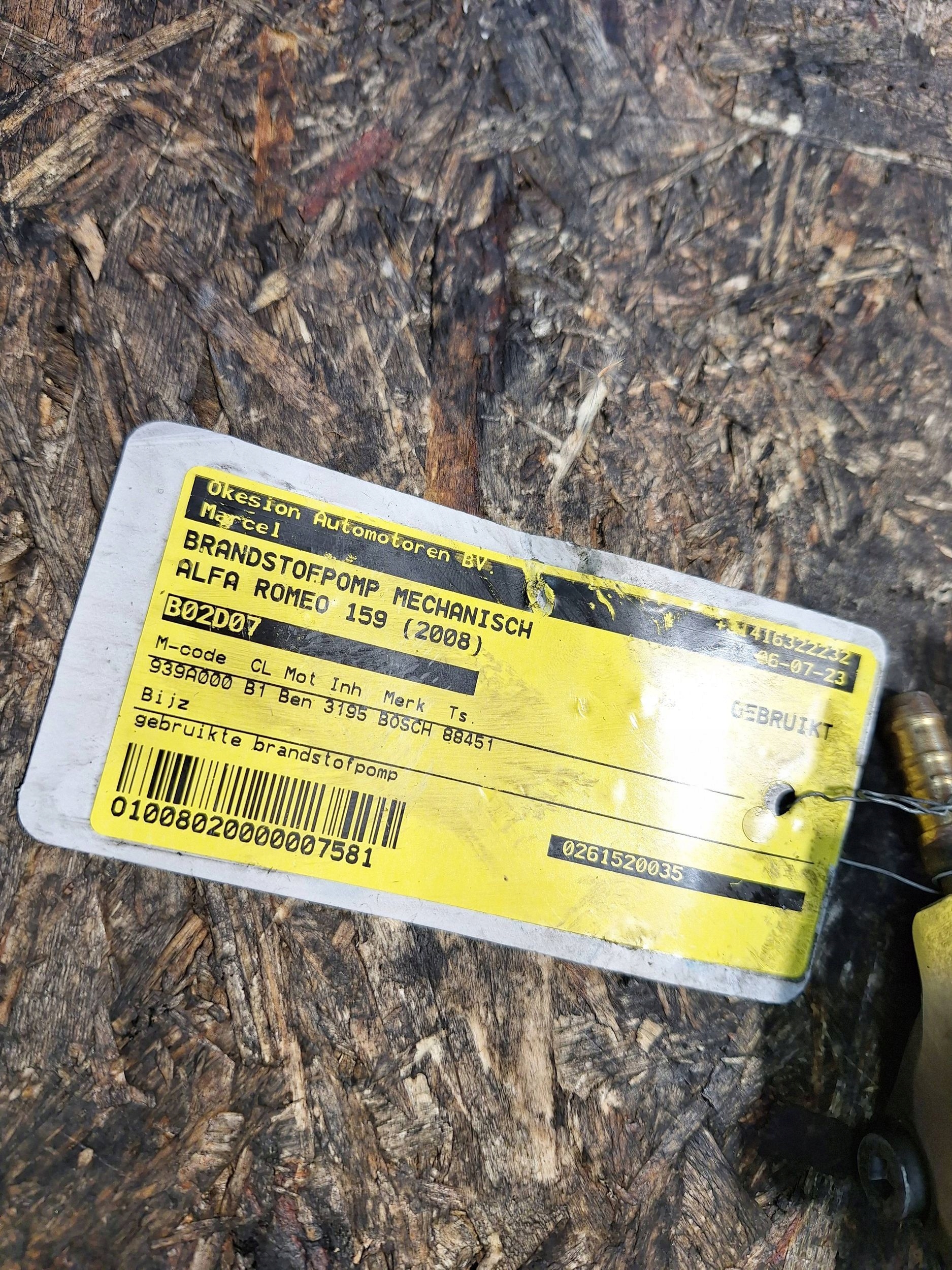 Насос 0261520035 топлива впрыскная alfa romeo 159 brera 3.2 jts