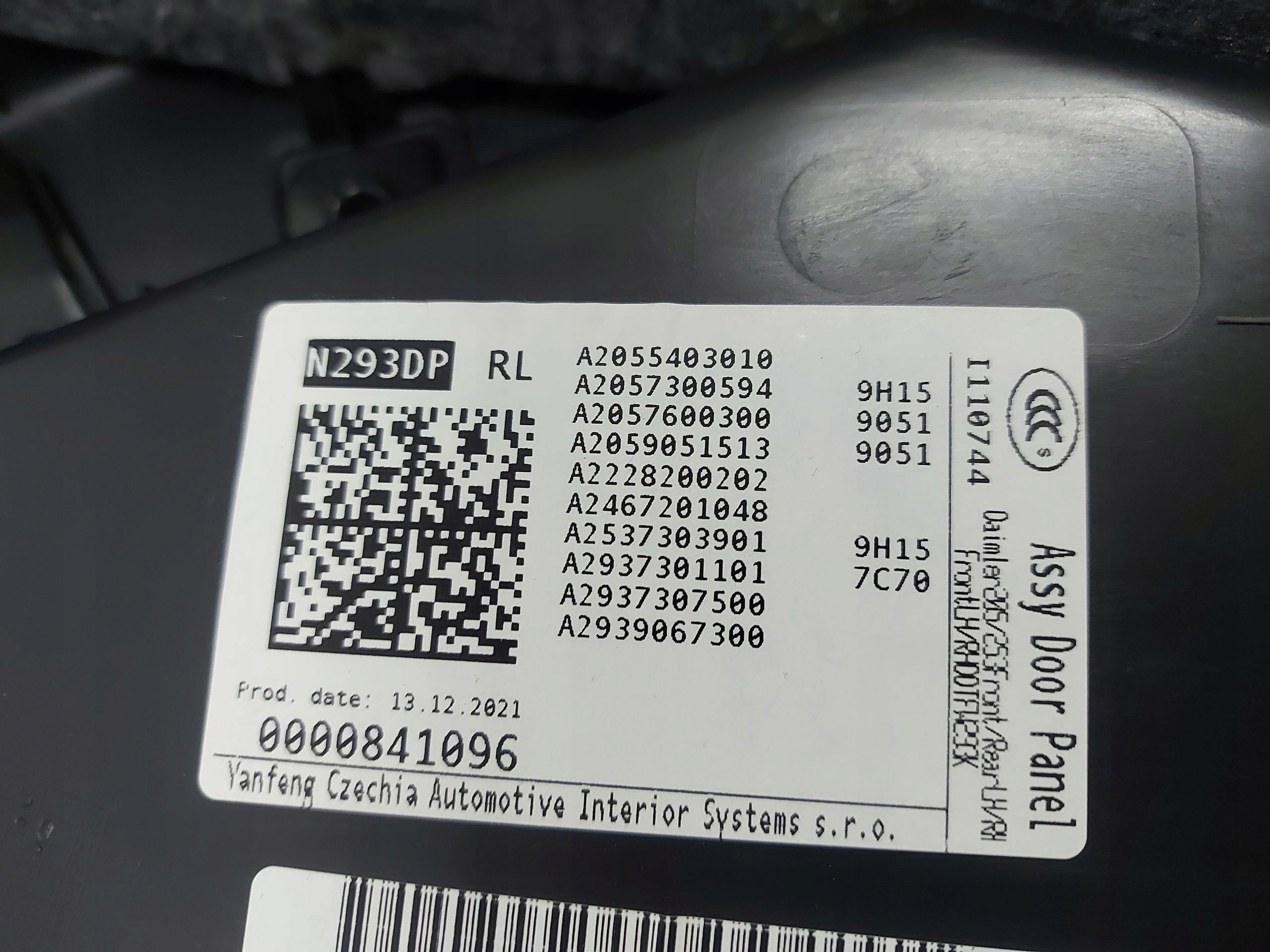Mercedes eqc n293 w293 21r. обивка обшивка дверь левый задняя a2937301101