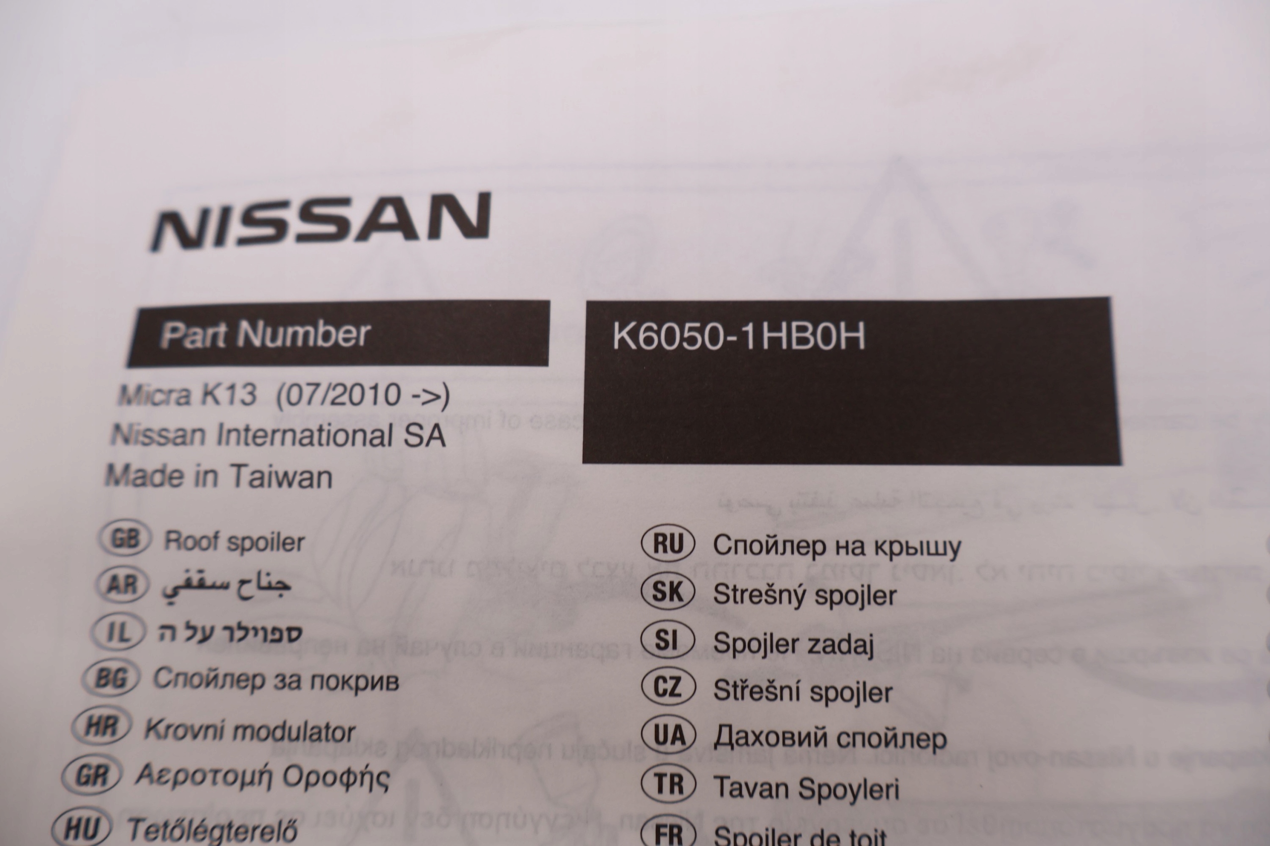 Есть ли гарантия на Nissan micra k13 спойлер крышки багажника k6050-1hb0h?