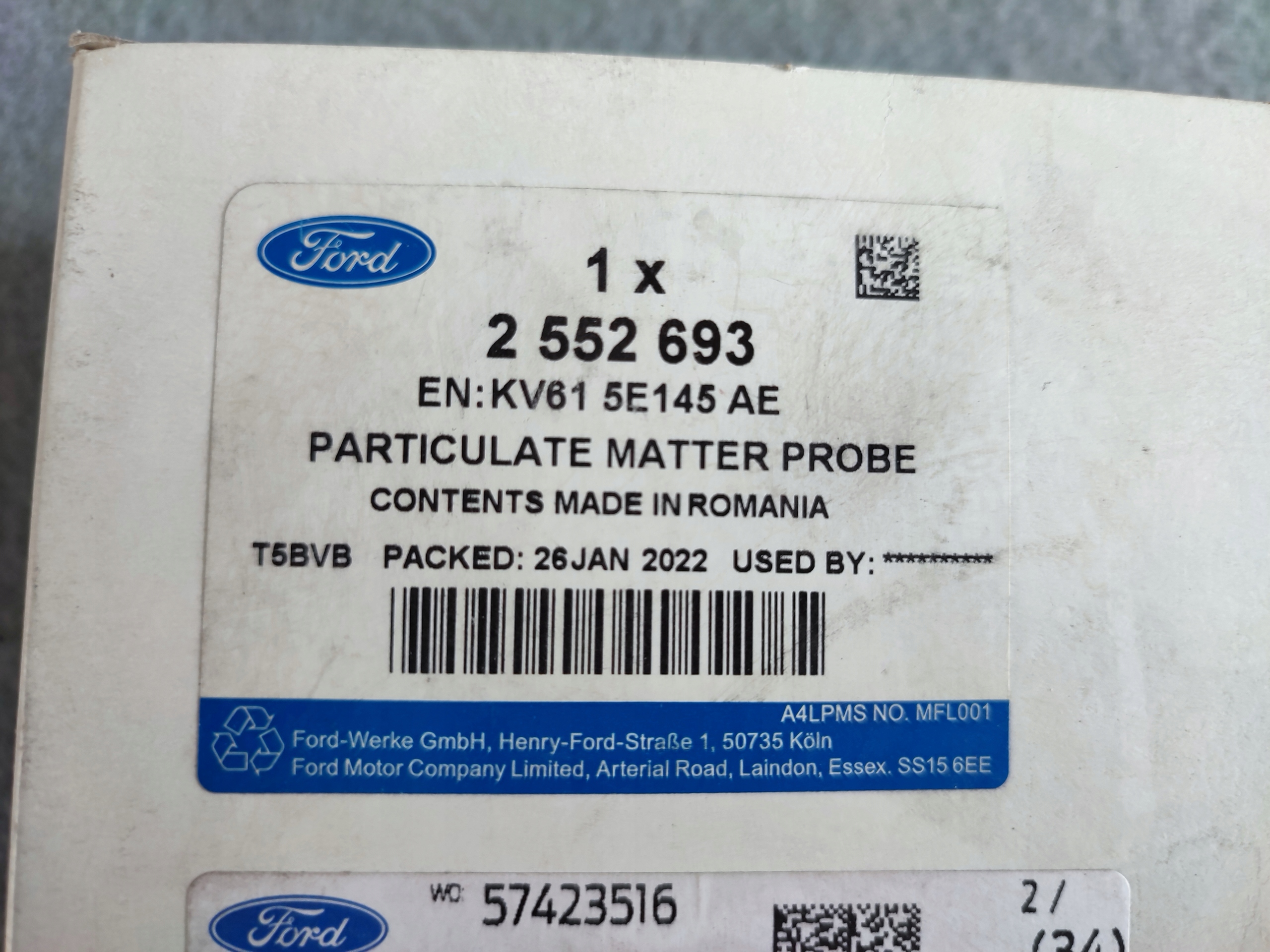 Датчик датчик nox ford оригинальный номер 1.5 ecoblue 2552693 kv615-e145-ae