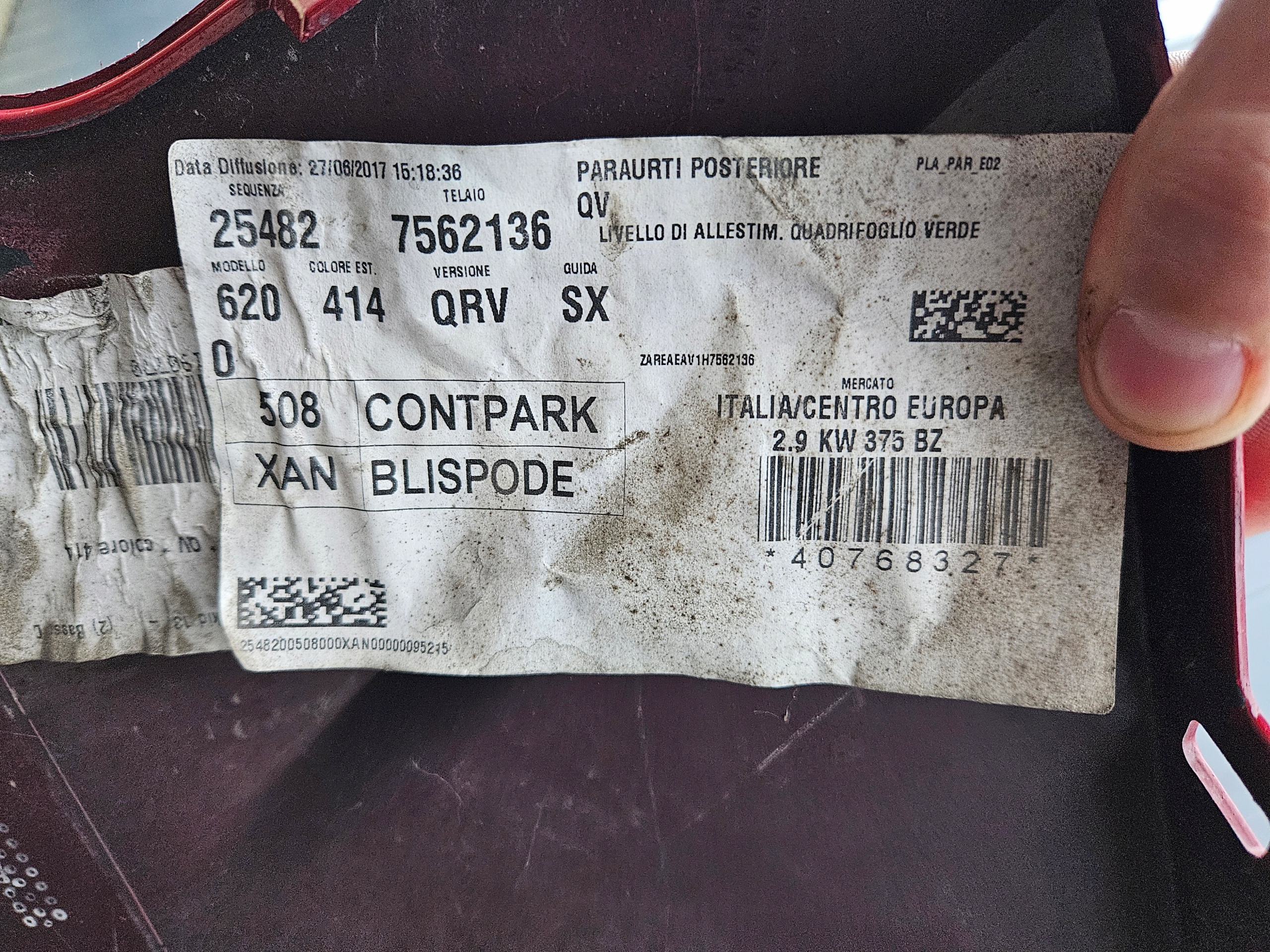 Бампер задняя задний alfa romeo giulia qv quadrifoglio 156111289 + dol