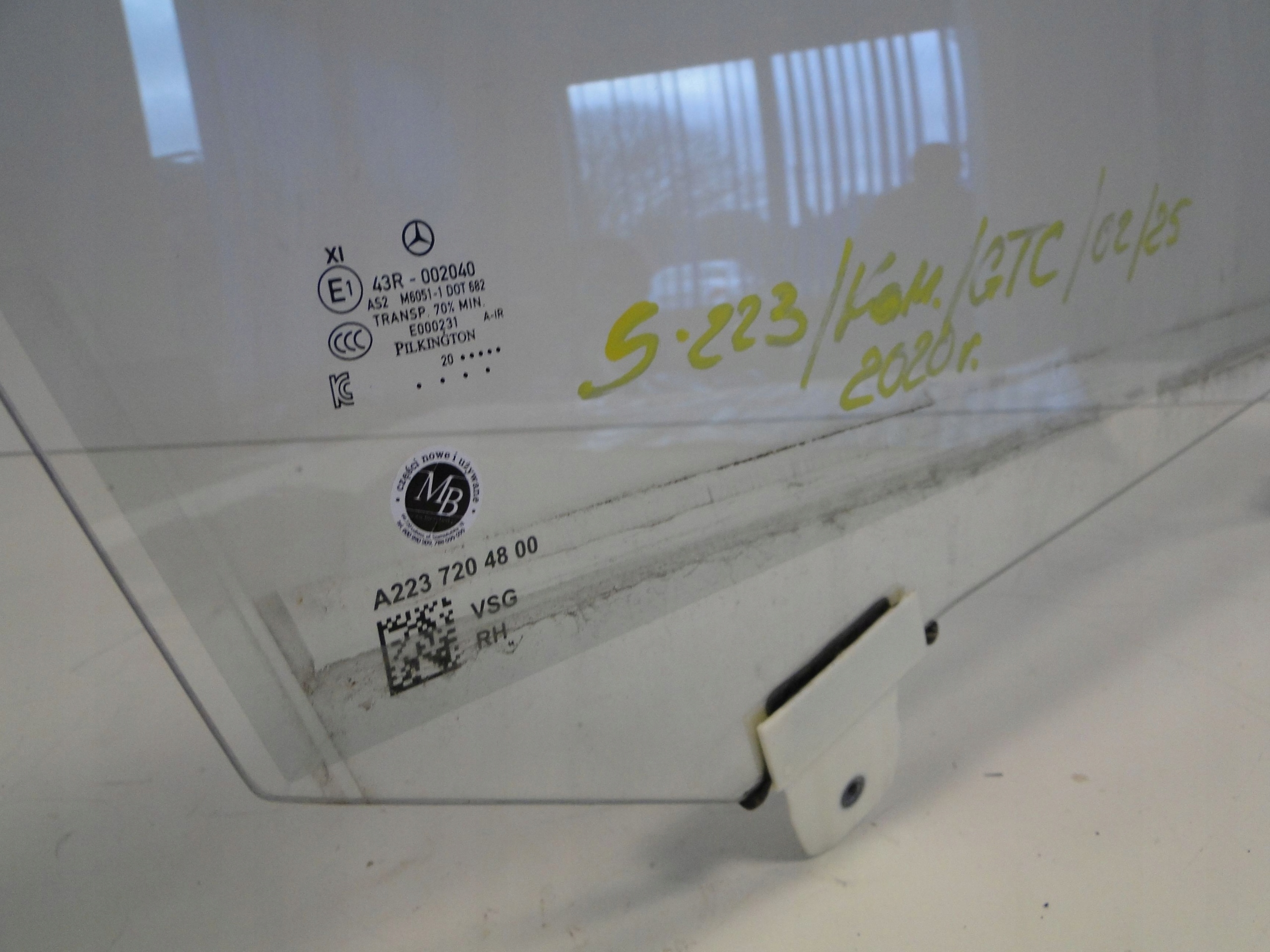 Каталожный номер детали: A2237204800, SZYBA, W, DRZWI, PRZEDNIE, PRAWE, S, KLASA, W223, PODWÓJNA
