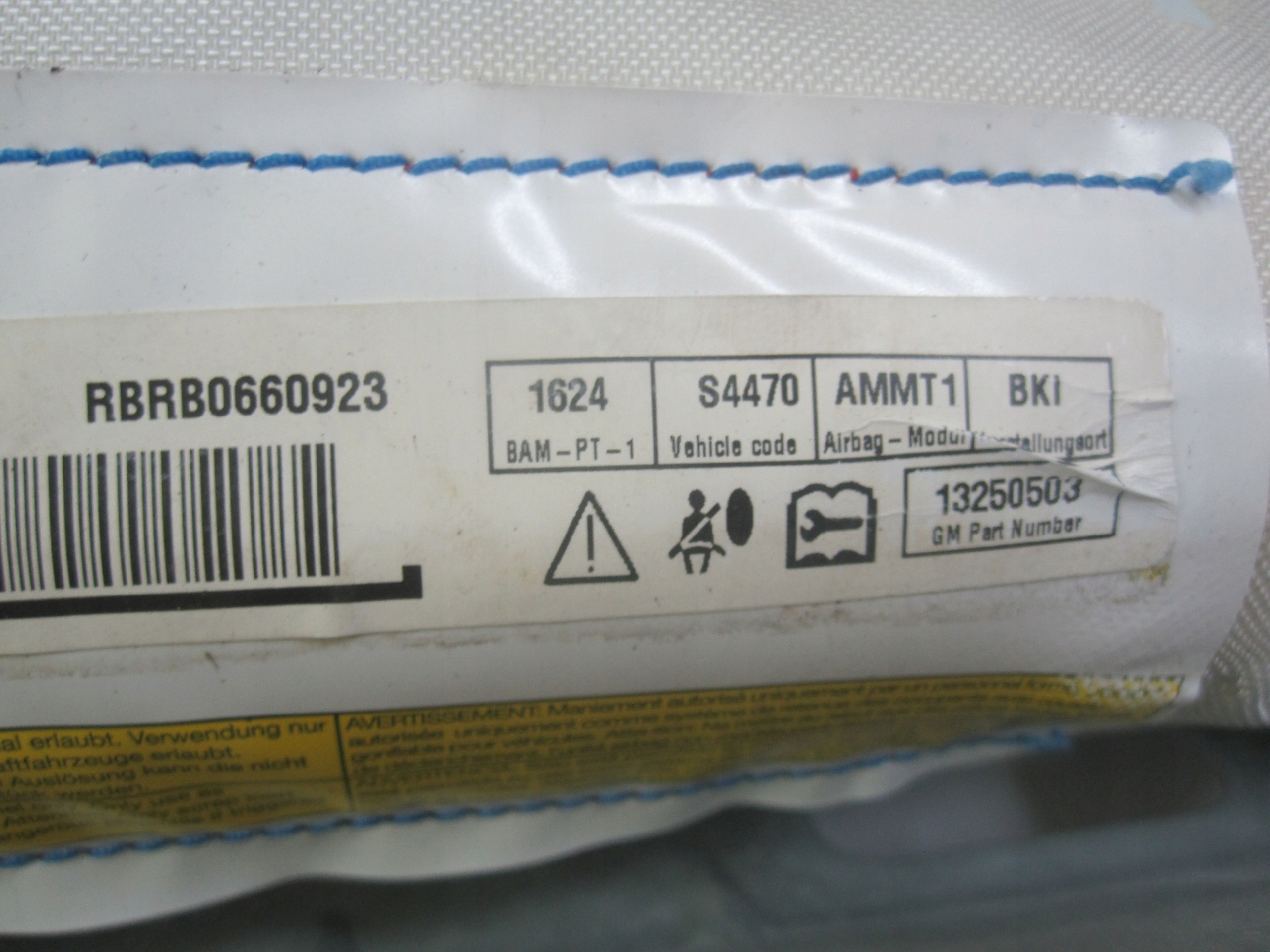 Каталожный номер детали: MERIVA B 11r kurtyna powietrza AIRBAG prawa 13250503 6104932