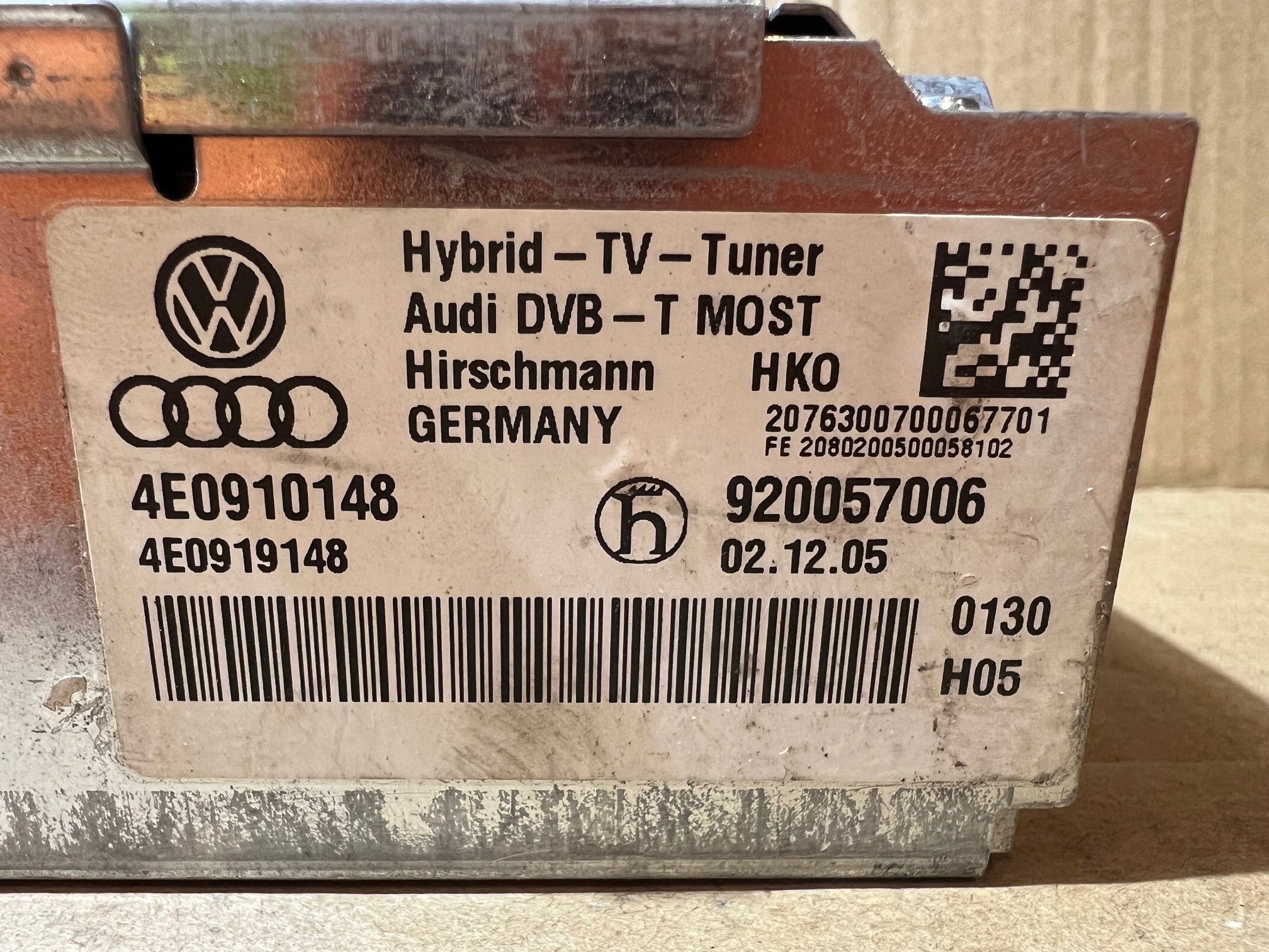 | Каталожный номер детали: | AUDI A8 D3 MODUŁ TUNER TV DVB-T 4E0910148 |