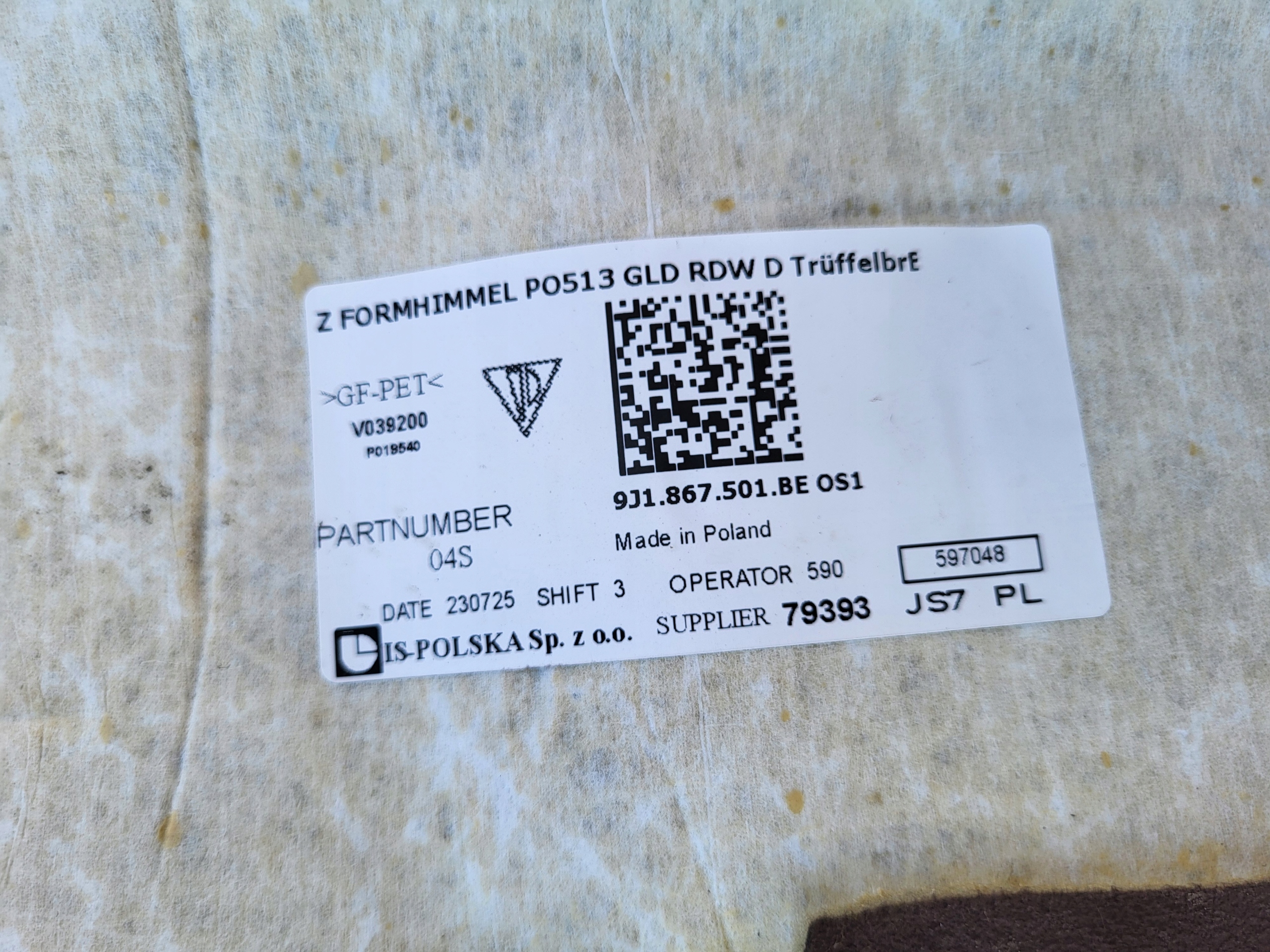 | Качество запчасти в соответствии с gvo: | o - оригинал с logo производитель транспортного средства оригинальный номер |