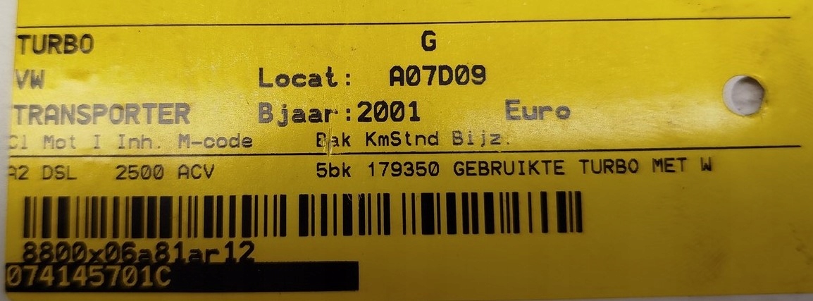 Турбонагнетатель vw lt 2,5 tdi 074145701c