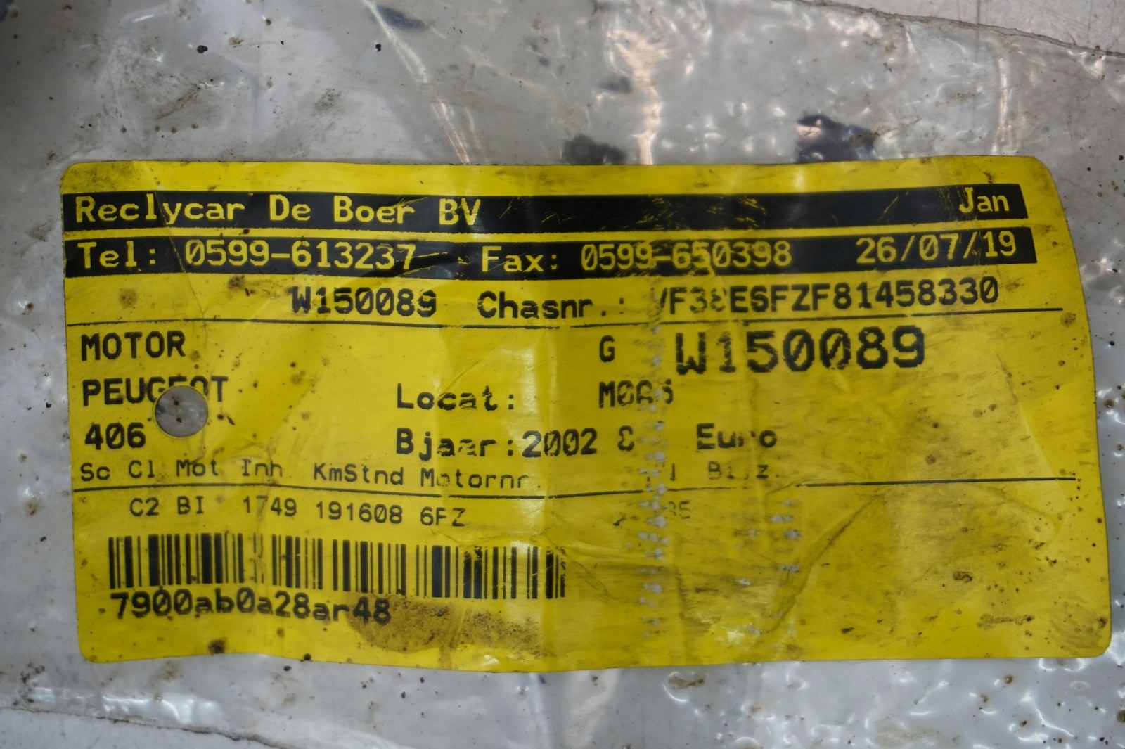 Двигатель benzy 6fz 10lt04 1.8 16v peugeot 406 ew7 01352t
