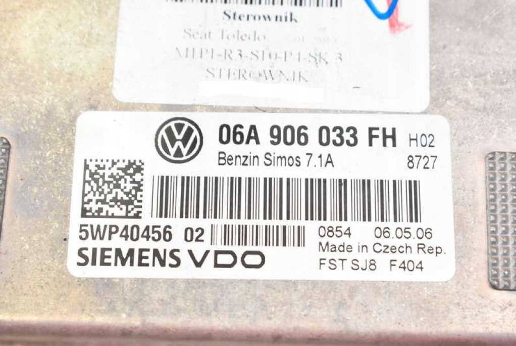 Блок управления бортовой компьютер двигателя 06a906033fh seat toledo iii 1.6 8v 102 km 04-10