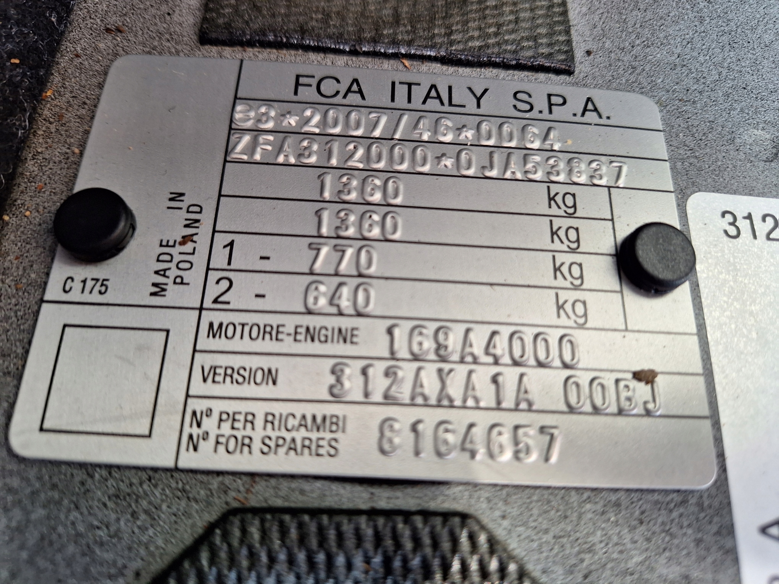 Каталожный номер детали: 00518942460, , , , , , , FIAT, 500, LIFT, 312, 2018, ROK