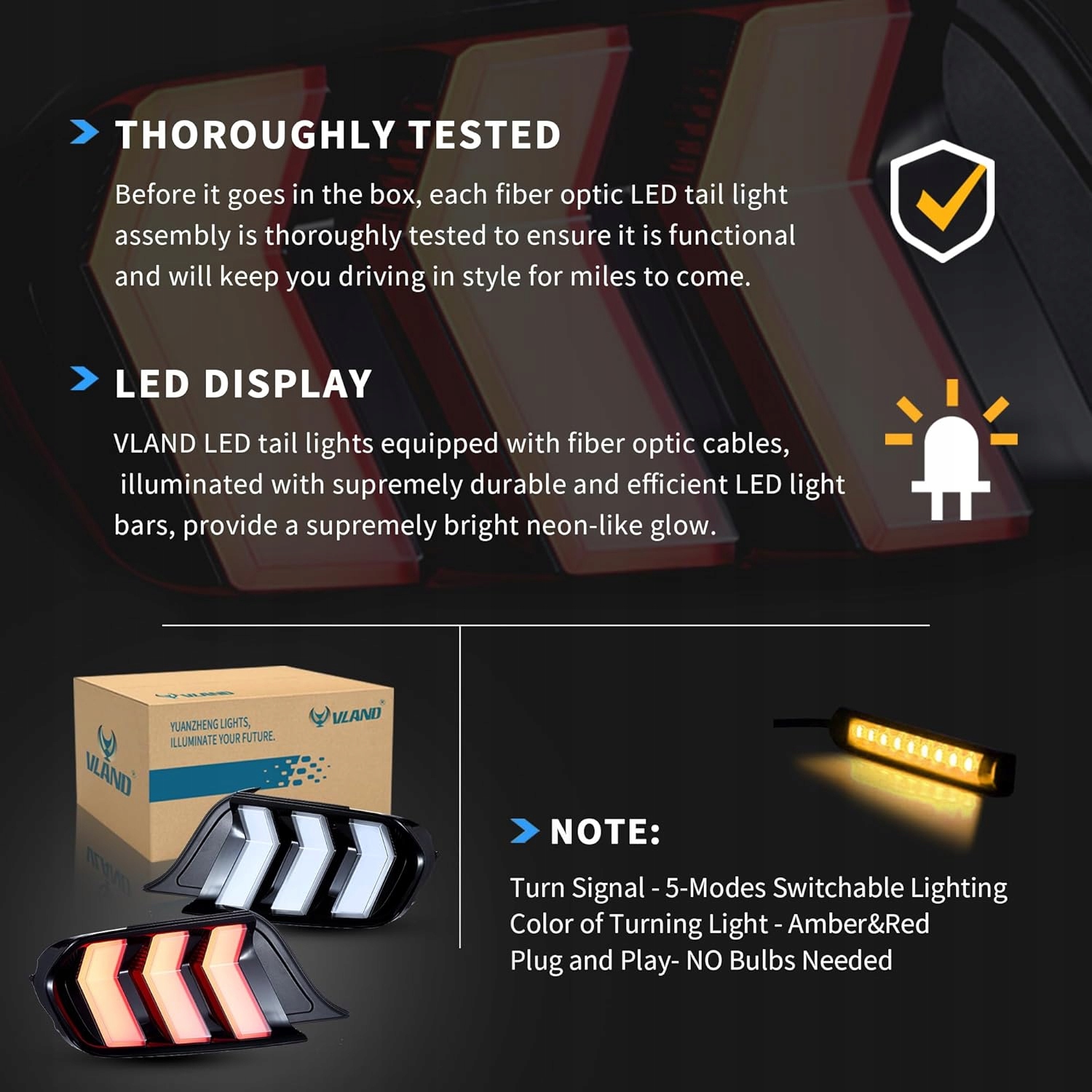 Есть ли гарантия на Ford mustang 2015-2023 фара фонари задние full led vland czyste поворотник жёлтый?
