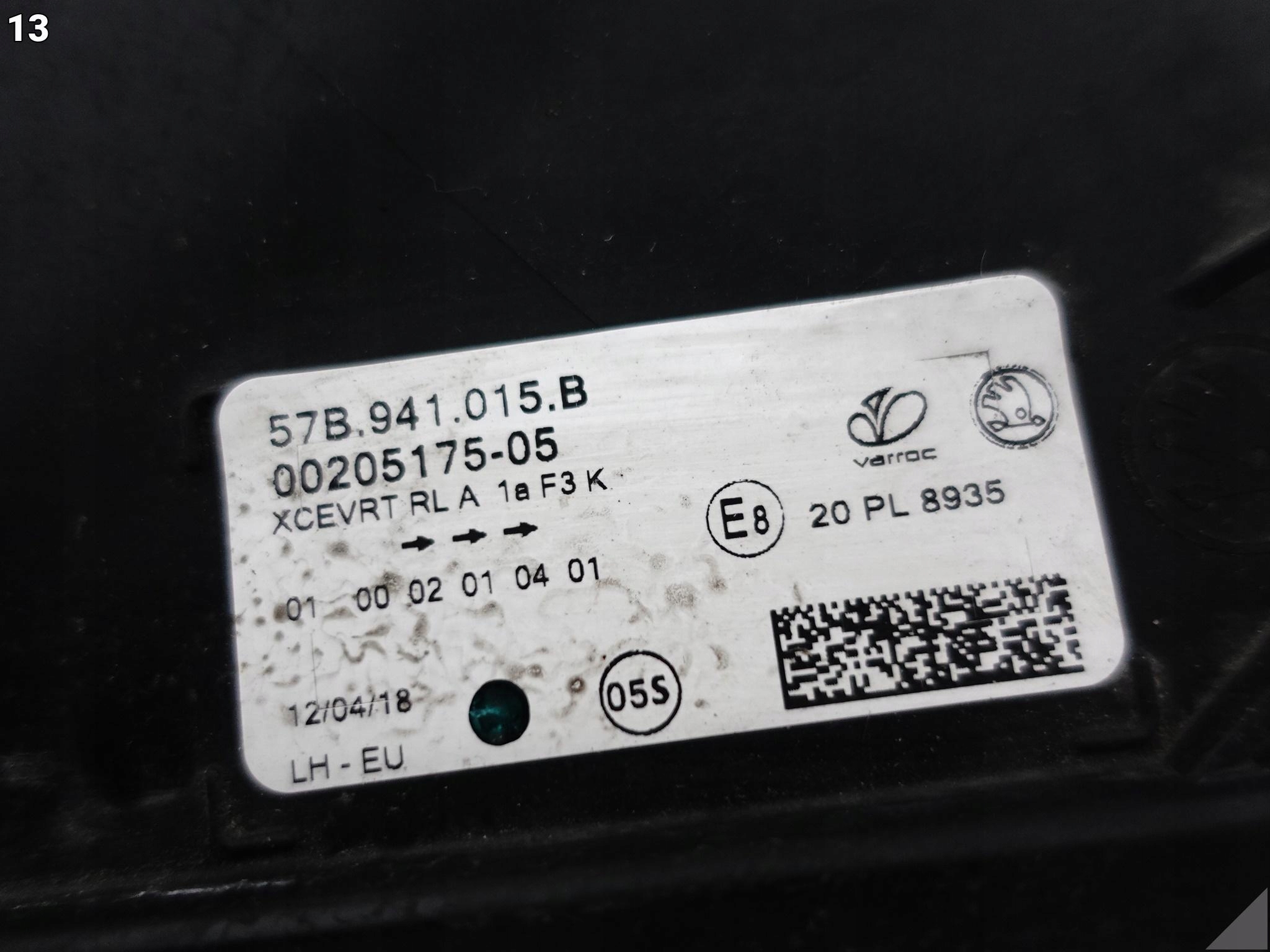 Skoda karoq 57b 17-21 лампа фара full led левая перед europa 57b941015b