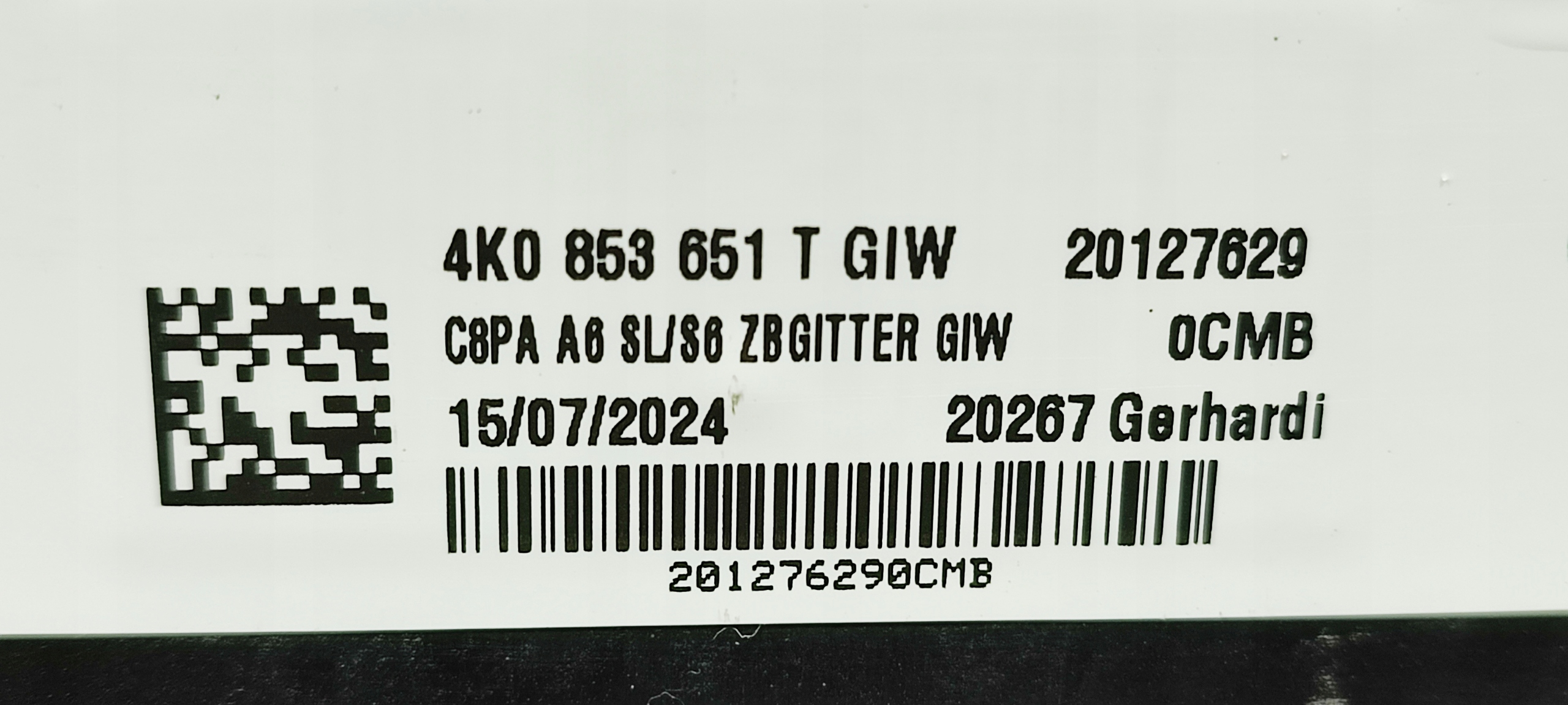 | Каталожный номер детали: | AUDI A6 C8 LIFT ATRAPA/GRILL 4K0853651T |