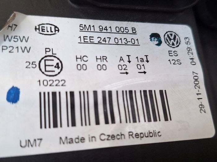 Vw golf v+ 5 plus 06-10 лампа передняя левая 5m1941005b