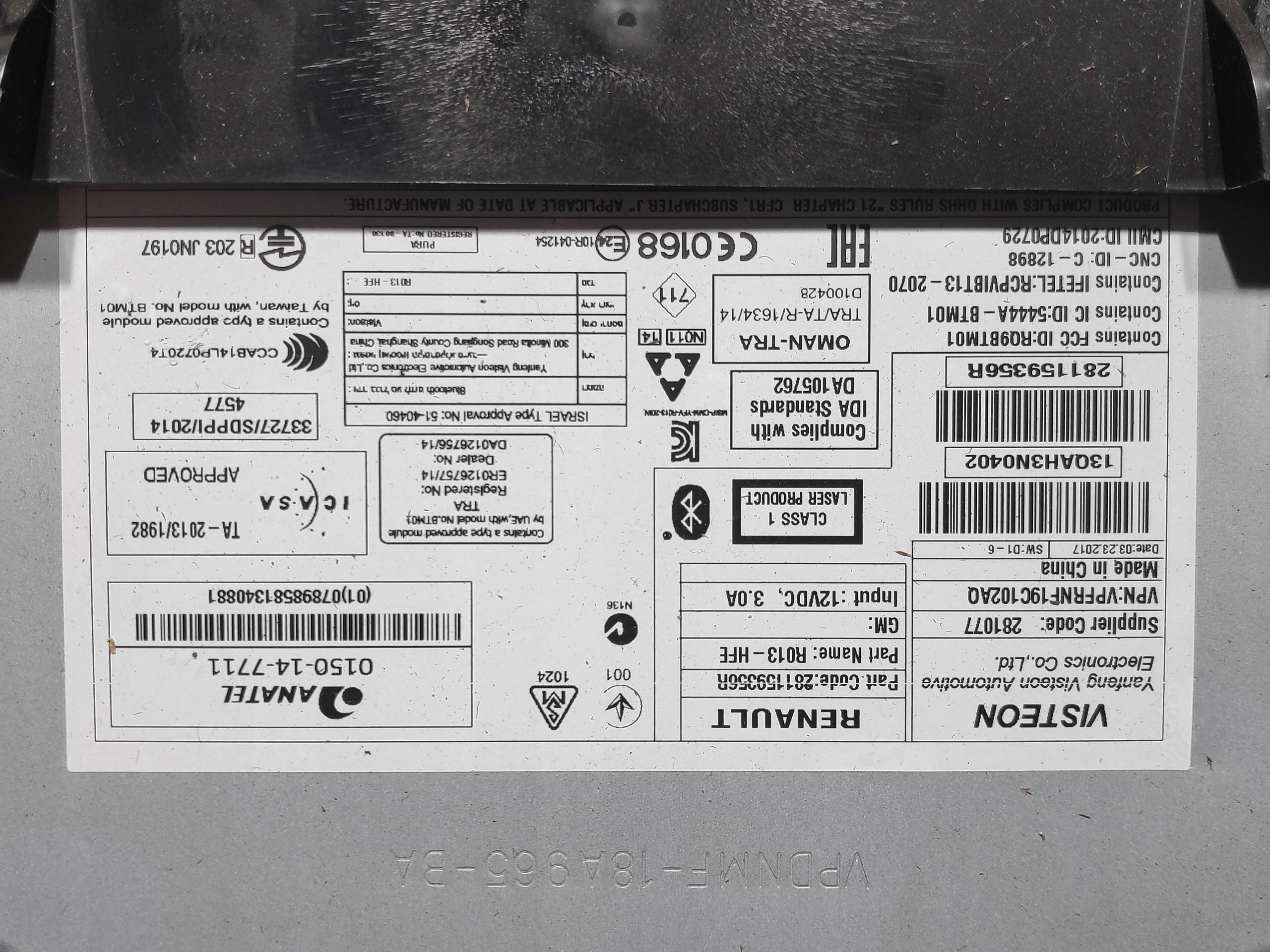 Радио оригинальные заводской радиопроигрыватель lift renault kadjar 281159356r