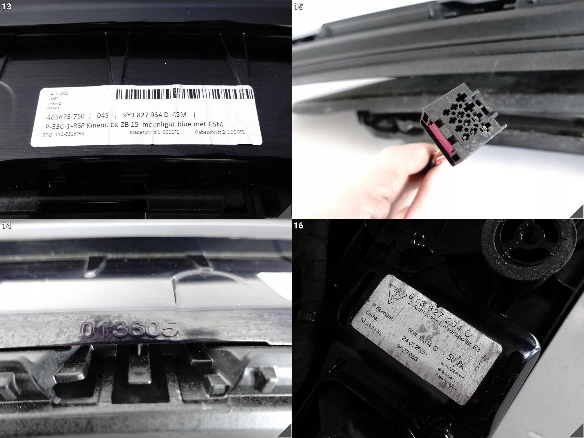 | Оригинальный каталожный номер: | 9Y3 827 204 C 9Y3.827.204.C 9Y3827204D, 9Y3.827.204.D 9Y3827204G 9Y3.827.204.G, 9Y3827204B 9Y3.827.204.B 9Y3827204, 9Y3.827.204 06510210-B LEONI 9Y3971127, 9Y3.971.127 86464501C 013605 9P1959944B, 9P1.959.944.B 9Y3827511 9Y3.827.511, 9Y3827934 9Y3827699 9Y3827934D, 9Y3.827.934.D SPOILER LOTKA NAPĘD, MECHANIZM KLAPA POKRYWA BAGAŻNIKA, ANTRIEBSEINH PODSZYBIE COUPÉ PLATINUM, EDITION S E-HYBRID HECKSPOILER, DACHSPOILER TRUNK LID UPPER WING ROOF, WIĄZKA MOONLIGHTBLUE MET METALLIC, MATALIK C5M (19-25) |