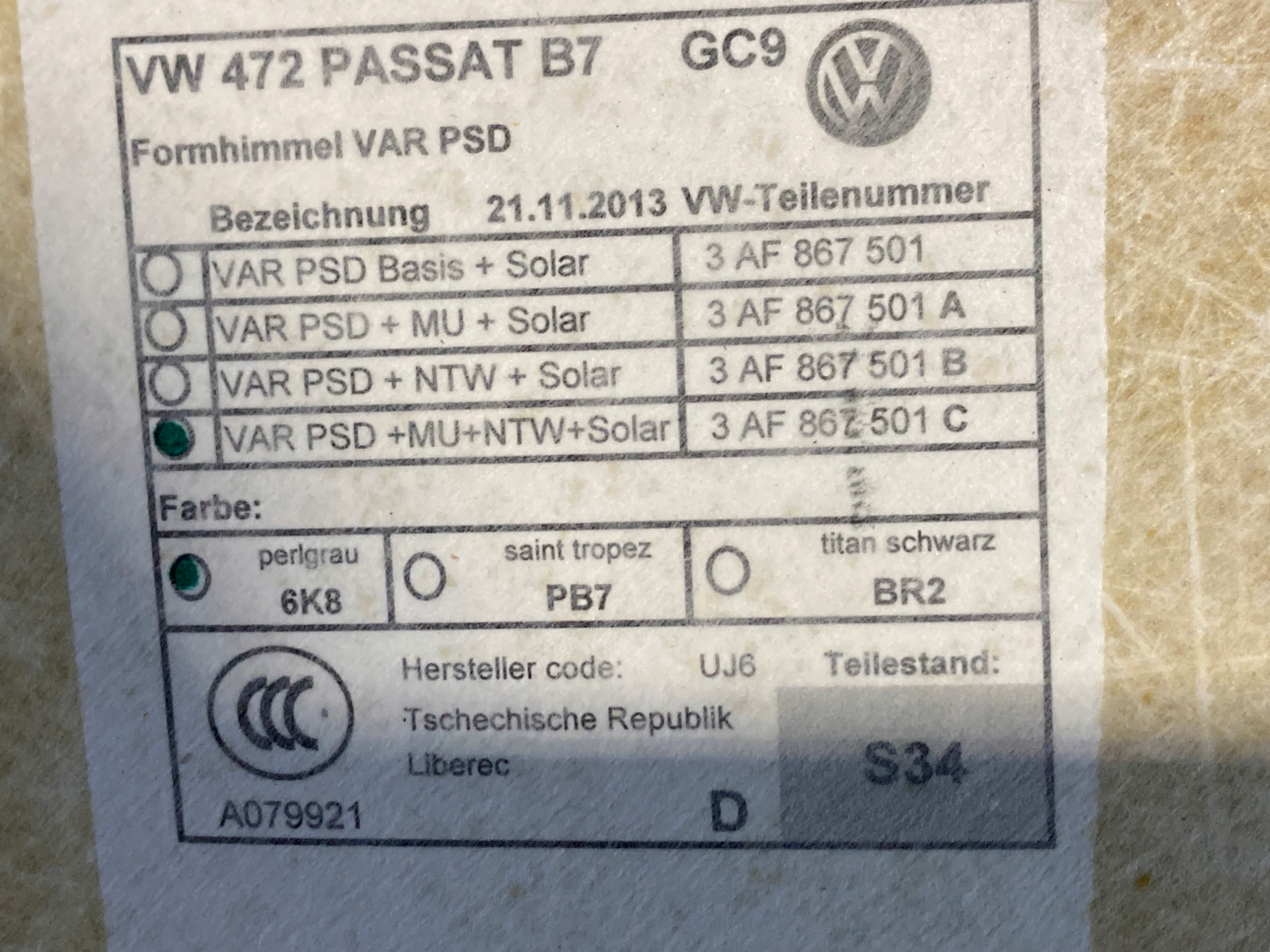 Потолок панорама vw passat b7 kombi