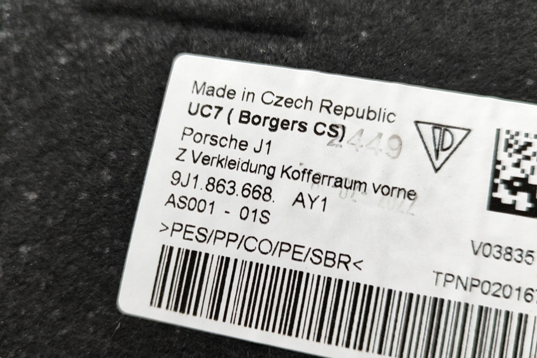 Porsche taycan 9j1 cross turismo передняя коврик багажника 9j1863668 2022
