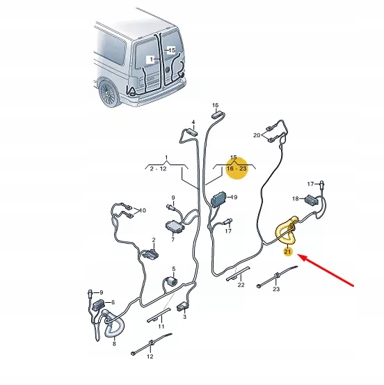 Vw transporter vi t6 rear правый wing door проводка grommet 7h0971840d