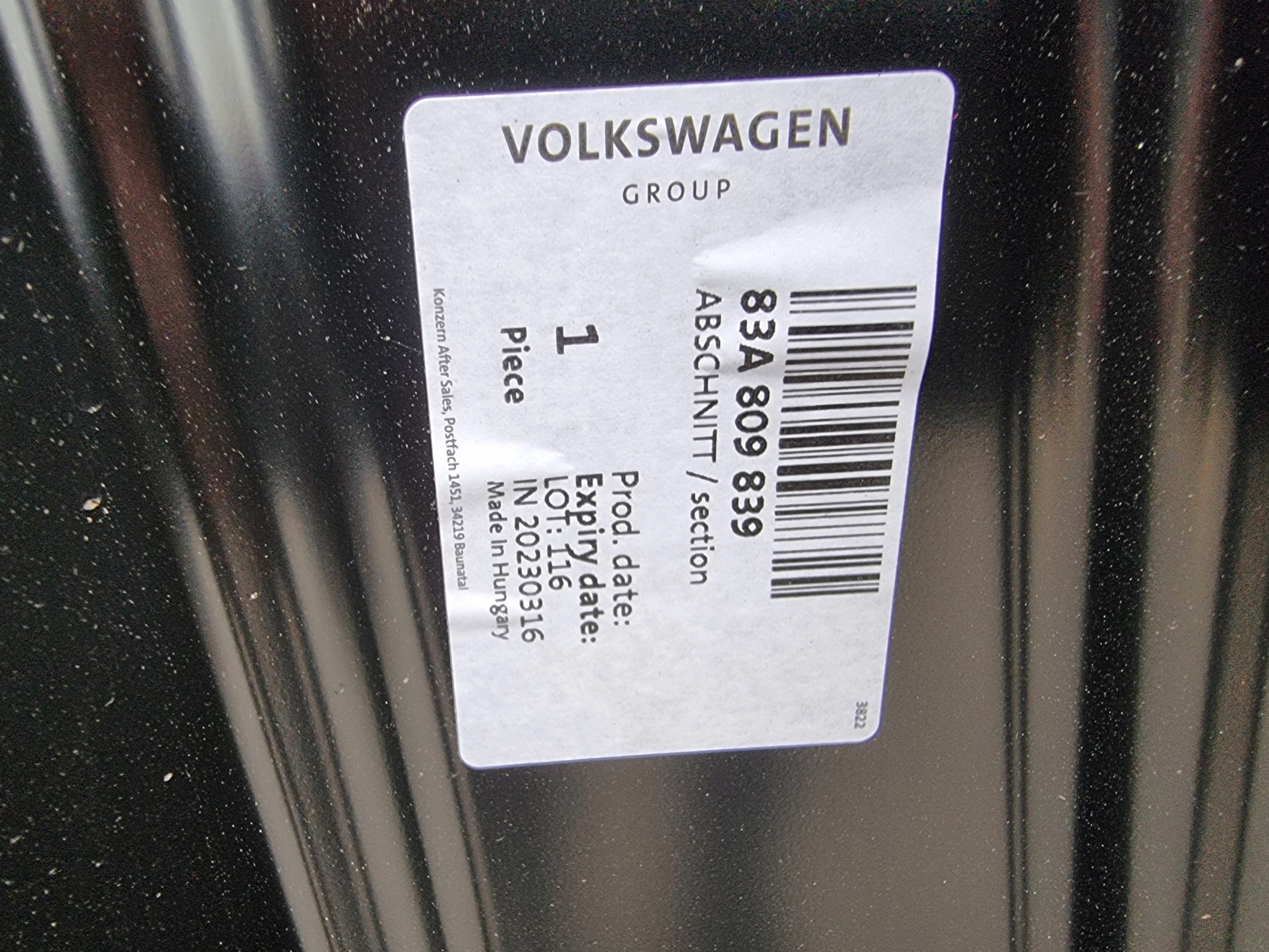 Есть ли гарантия на Audi q3 2 83a 18- обшивка левая передние стойку левая порог перед 83a809839?