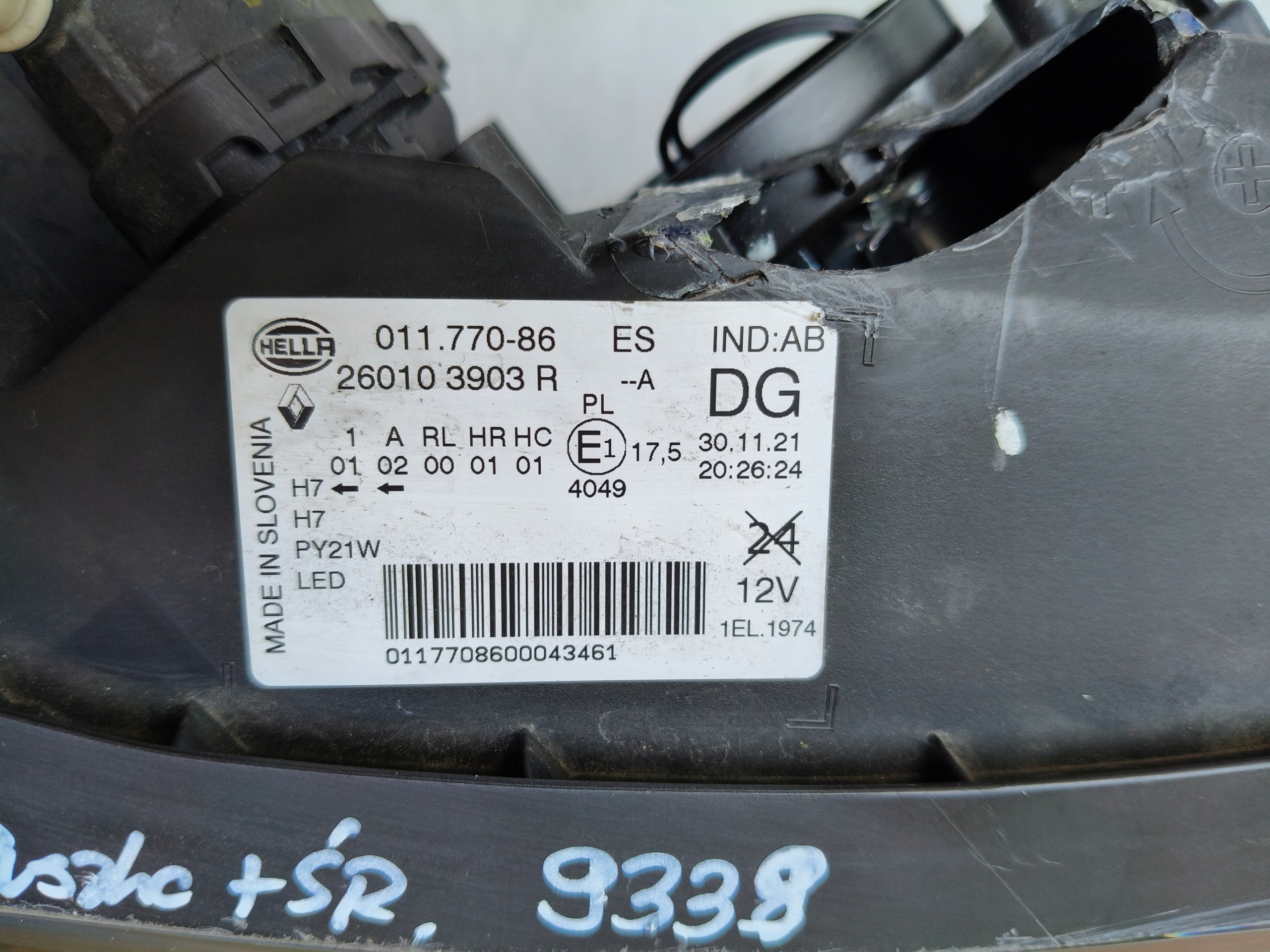 Лампа правая фара renault kadjar 18- lift led