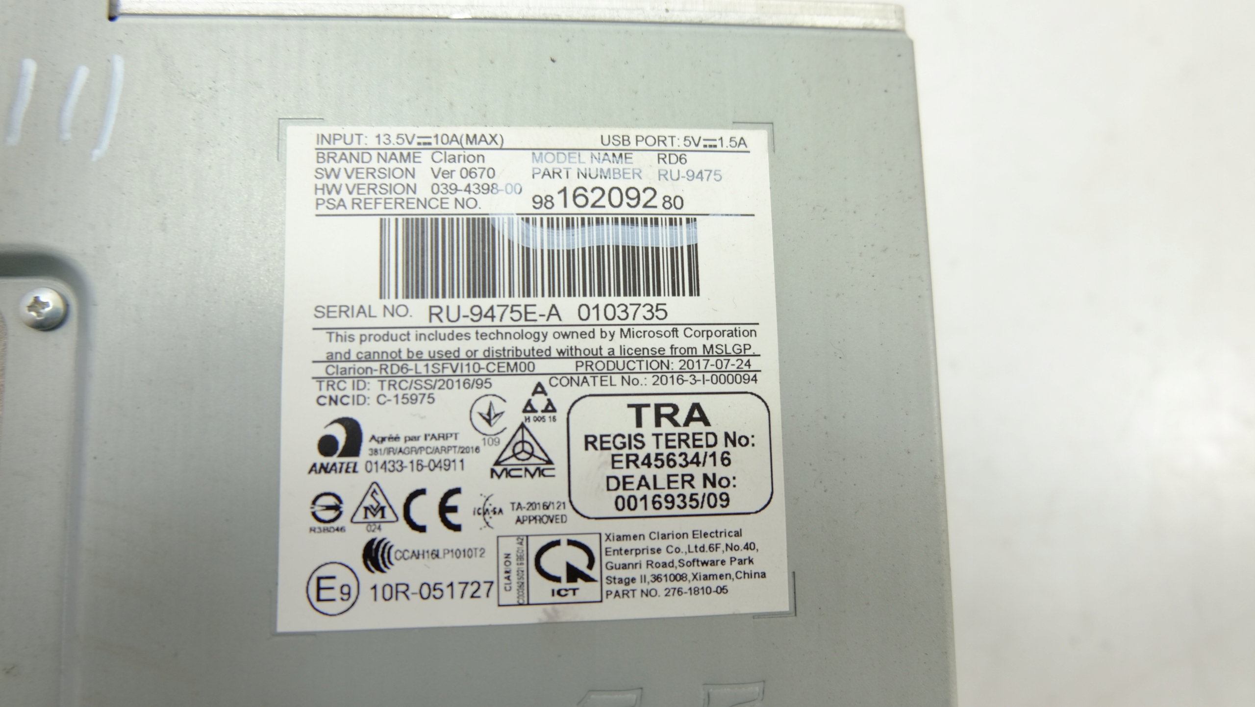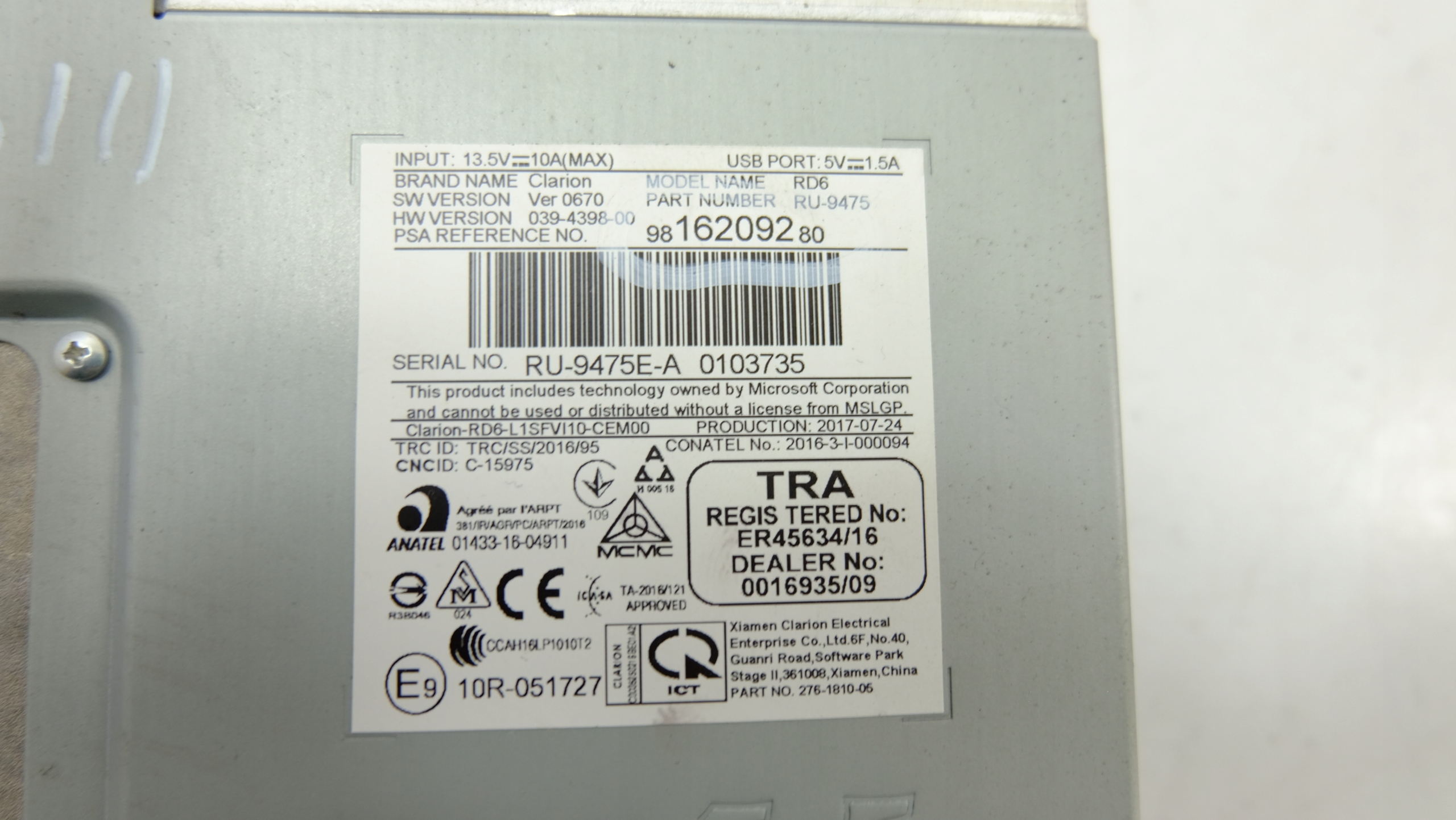| Каталожный номер детали: | CITROEN, C3, III, RADIO, 9816209280 |