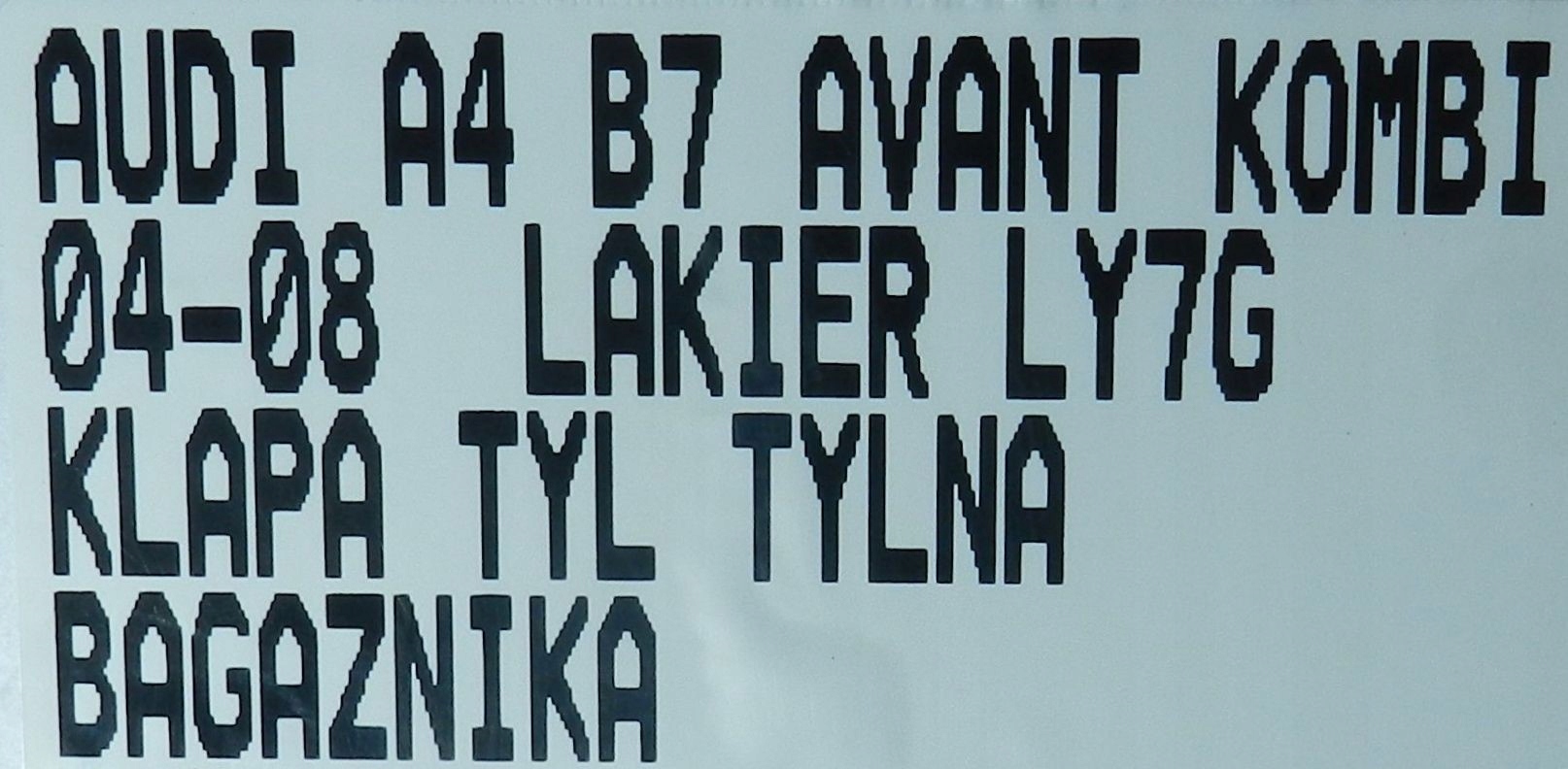 | Каталожный номер детали: | 195.AUDI, A4, B7, 04-08, AVANT, KOMBI, KLAPA, TYŁ, TYLNA, BAGAŻNIKA, LAKIER, LY7G |