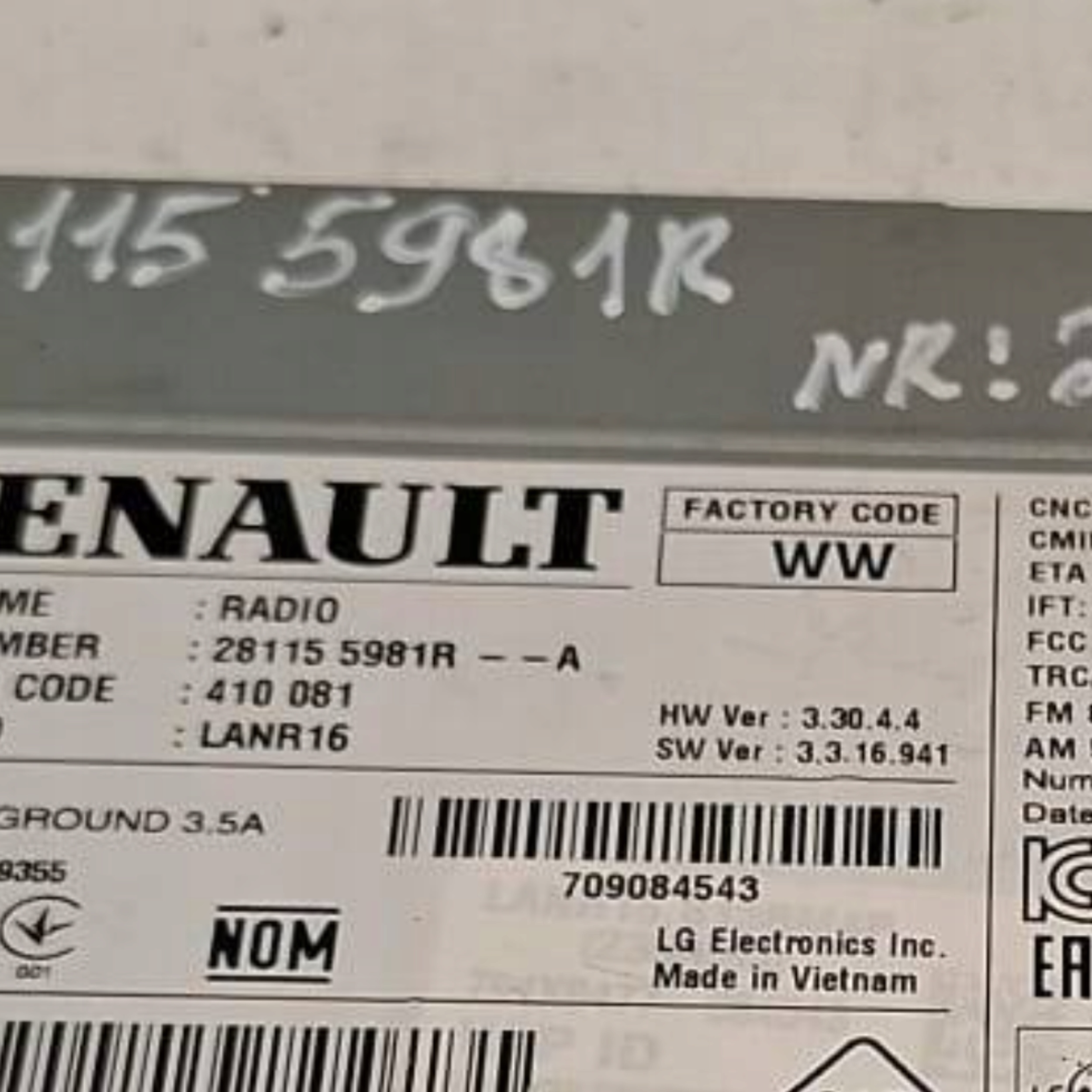 | Каталожный номер детали: | 281155981R |