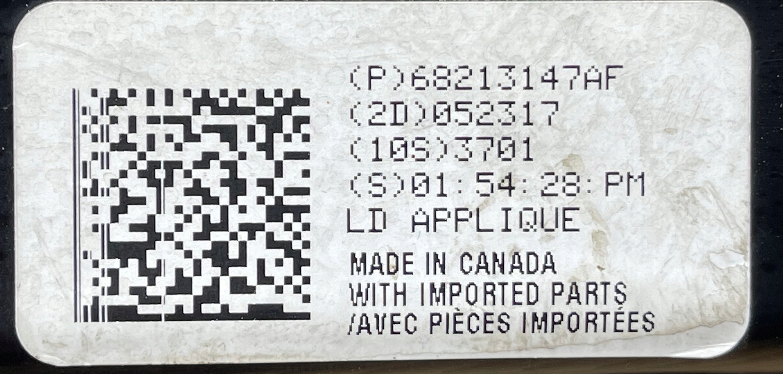 | Каталожный номер детали: | 68213147AF, P5 |