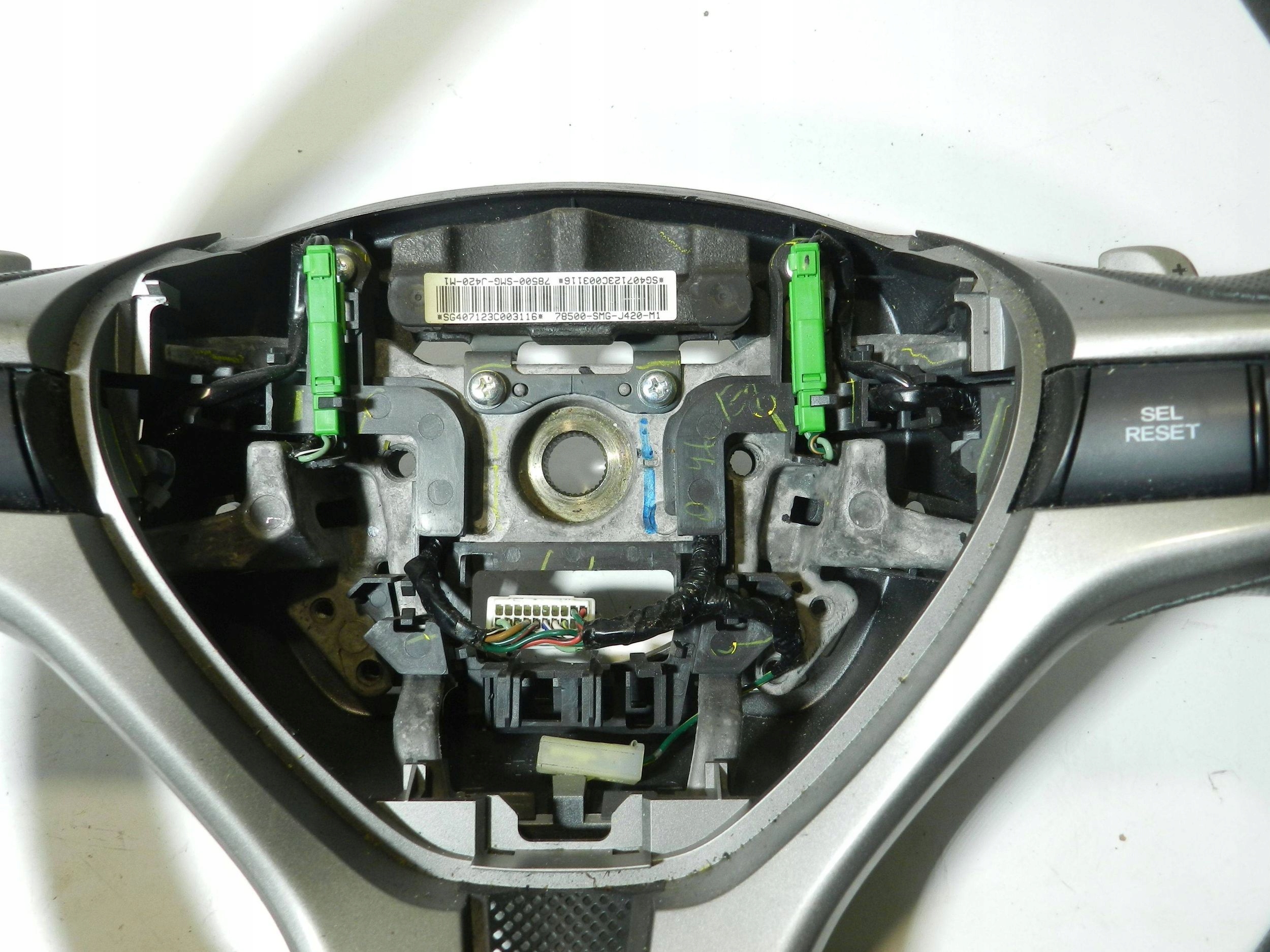 Каталожный номер детали: 78500-SMG-J420-M1, HONDA, CIVIC, VIII, UFO, KIEROWNICA, SKÓRA, MULTIFUNKCJA, AIRBAG, PODUSZKA, ŁOPATKI