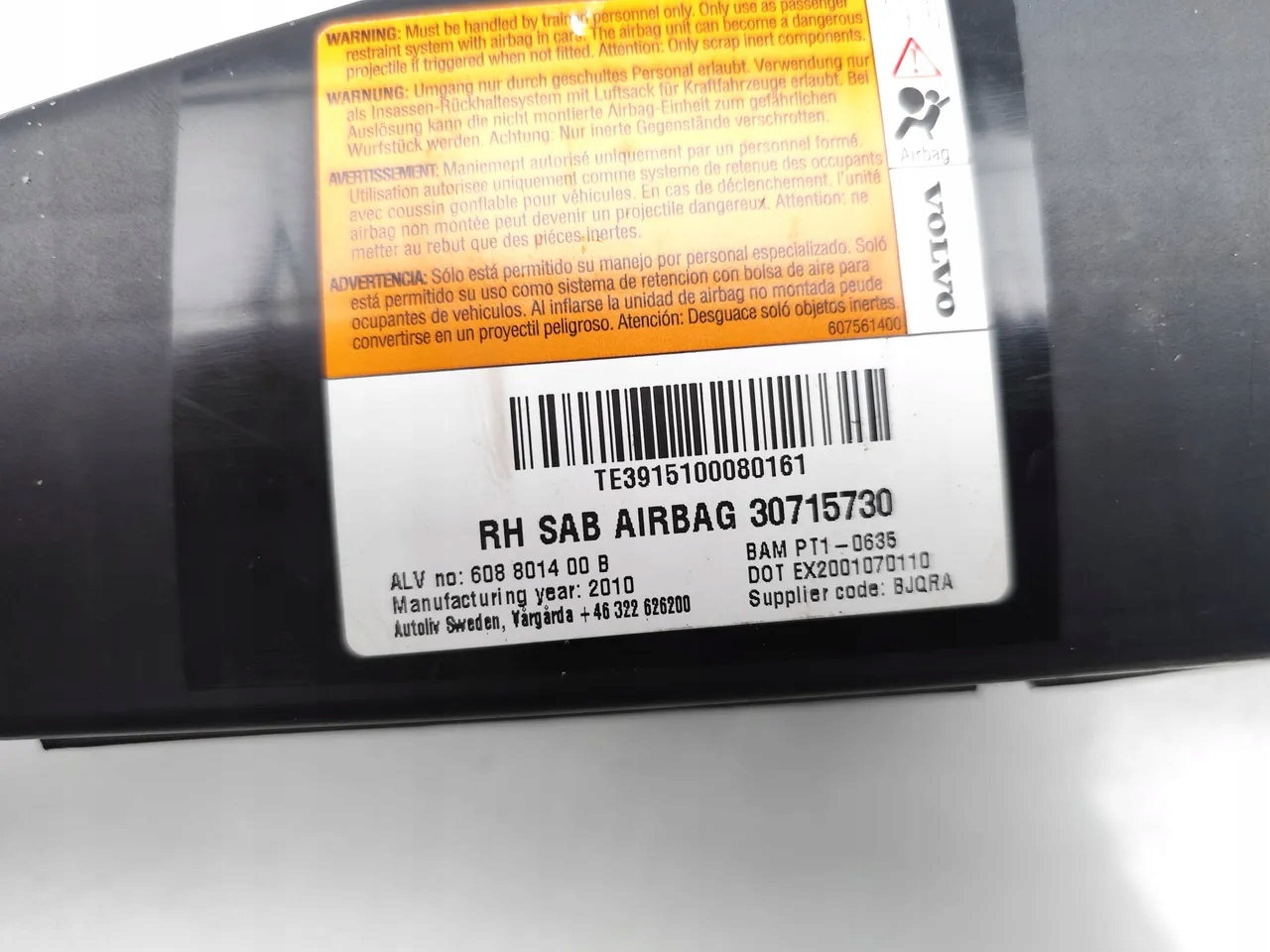 Volvo xc70 подушка воздушная подушка безопасности сиденье перед prawidłowy 2010 estate