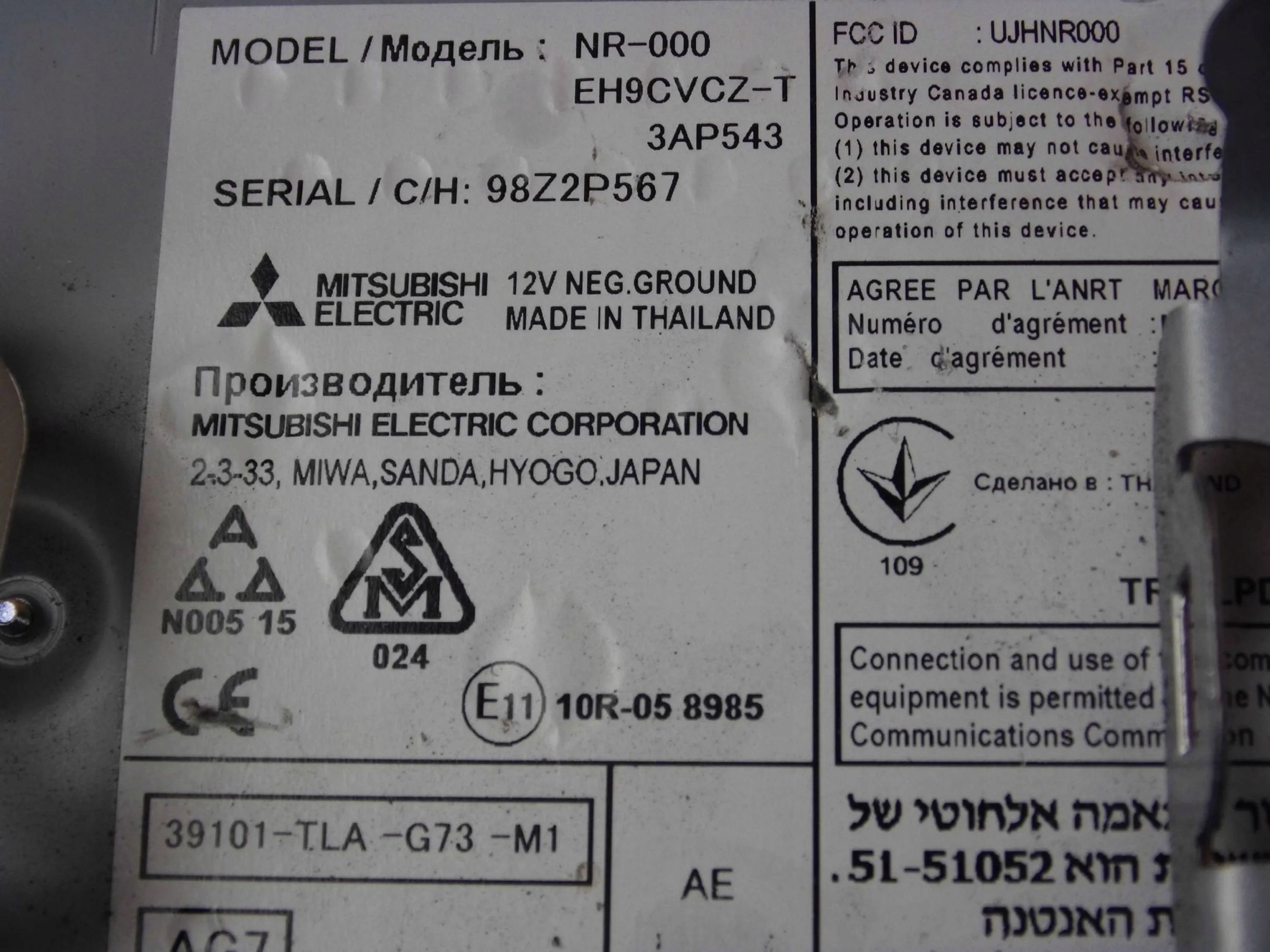 | Каталожный номер детали: | 39101-TLA-G73-M1 |