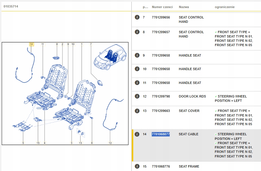 | Каталожный номер детали: | 7701068077 |