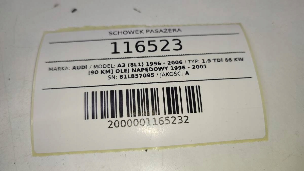 Бардачок пассажира панели консоли чёрный audi a3 8l 8l1857095