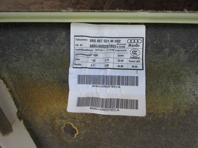 | Каталожный номер детали: | Audi Q5 I 8R Podsufitka 8R0867501M |