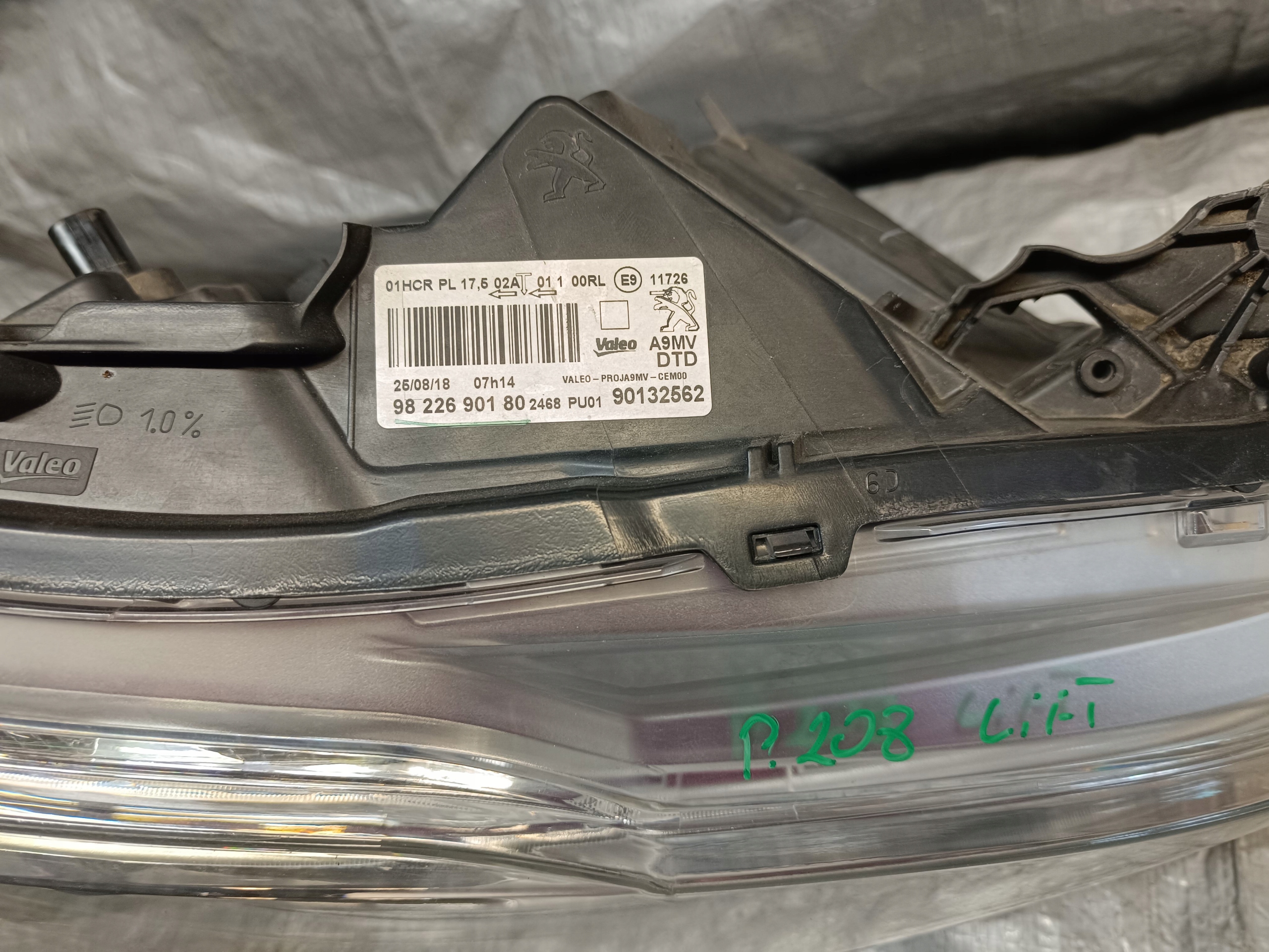 Лампа перед правая peugeot 208 i europa 9822690180