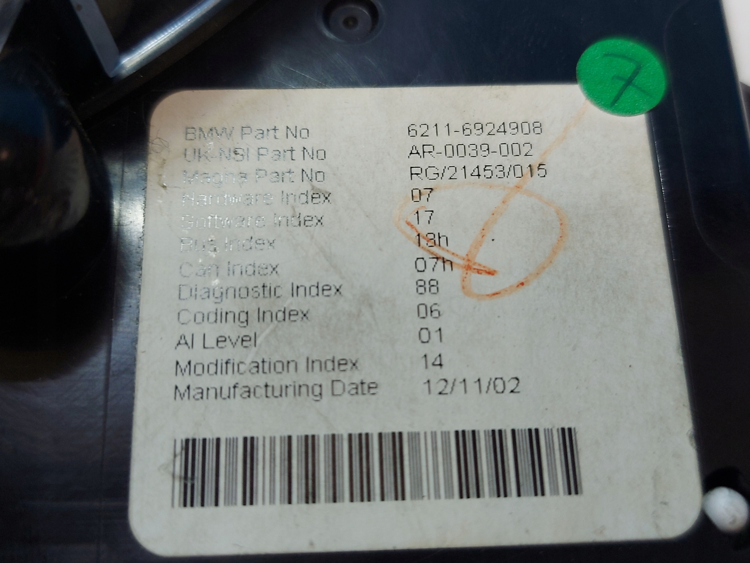 | Каталожный номер детали: | 62116924908 |