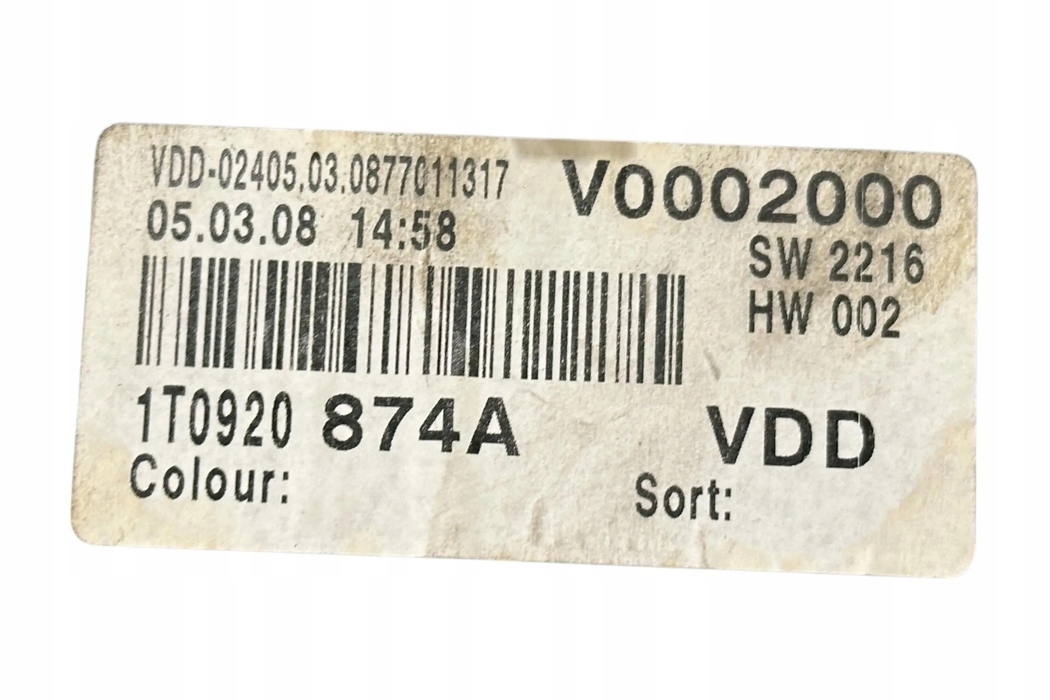 Счетчик vw touran 1t3 1t0920874a 2.0l дизель 125kw 2008