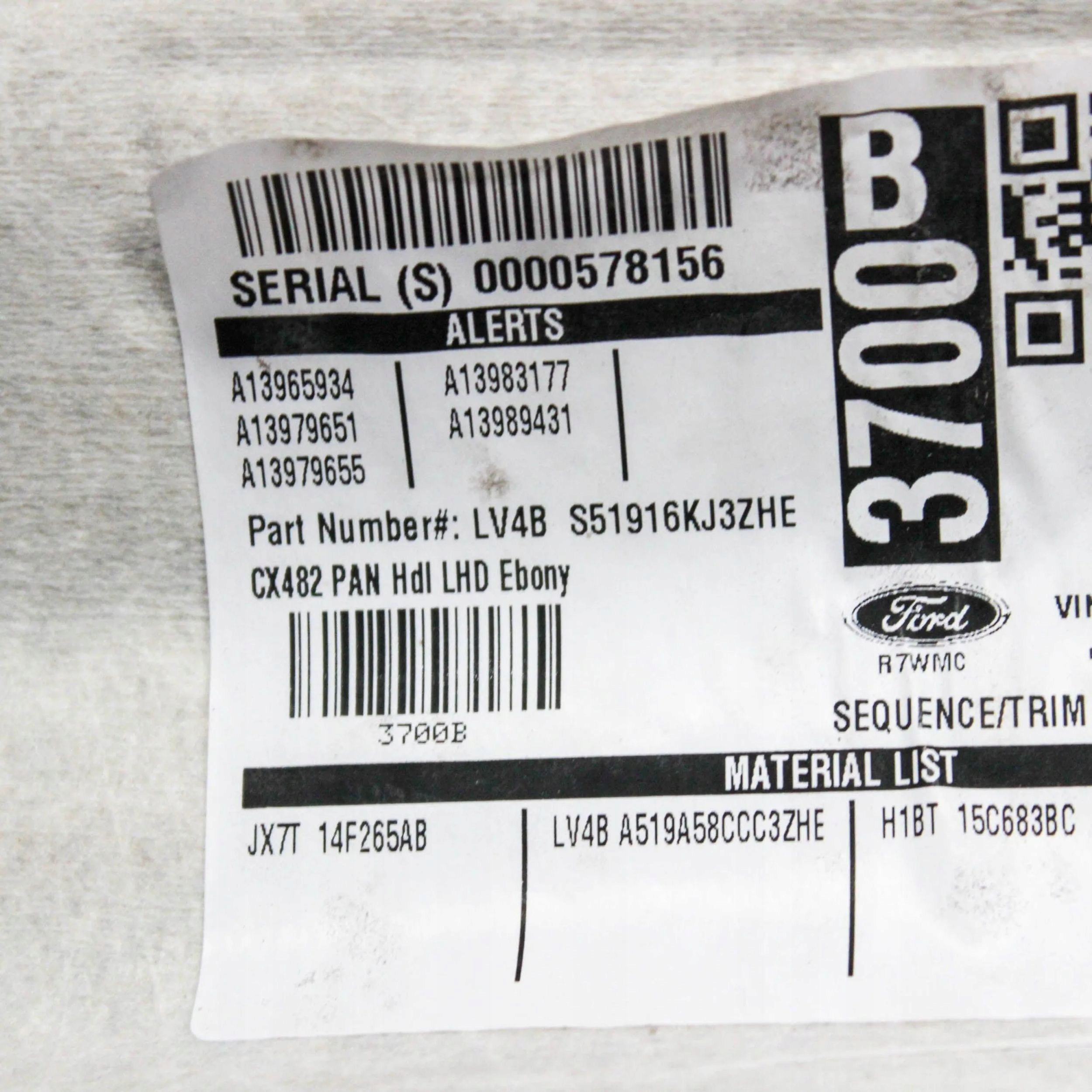 | Каталожный номер детали: | LV4BS51916KJ |