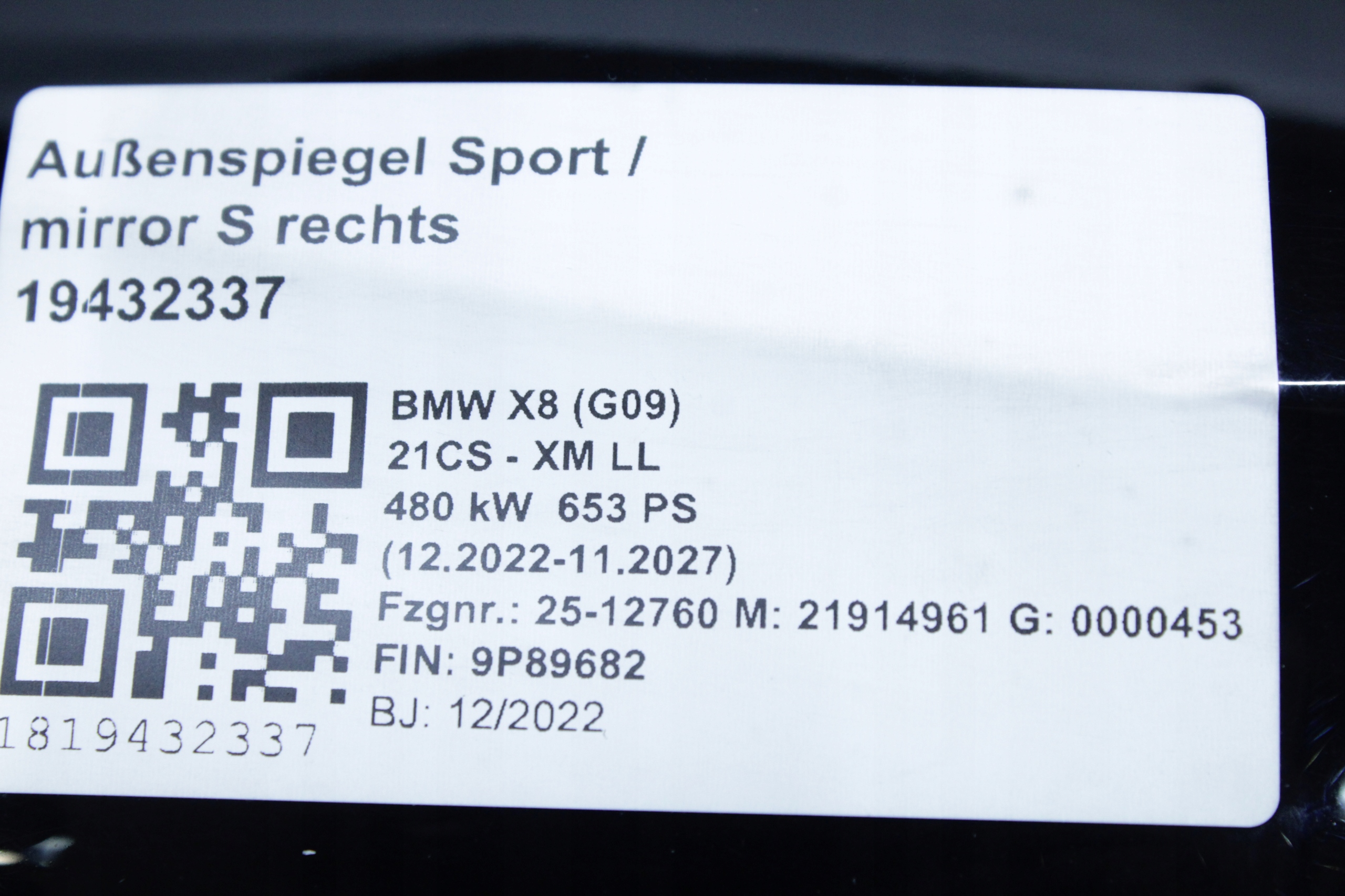 Зеркало правое 5pin камера ассистент shadowline bmw g09 xm