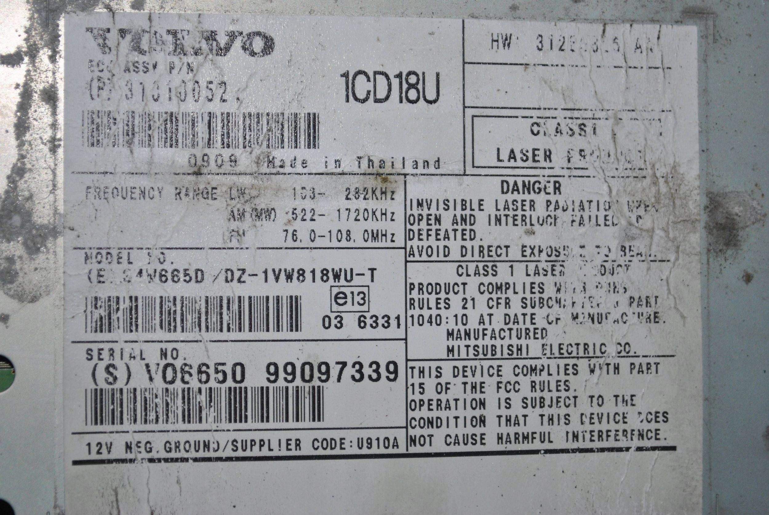 Радио считыватель дисков volvo c70 31310052