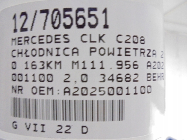 Mercedes clk c208 радиатор воздуха интеркулер a2025001100 2,0 34682